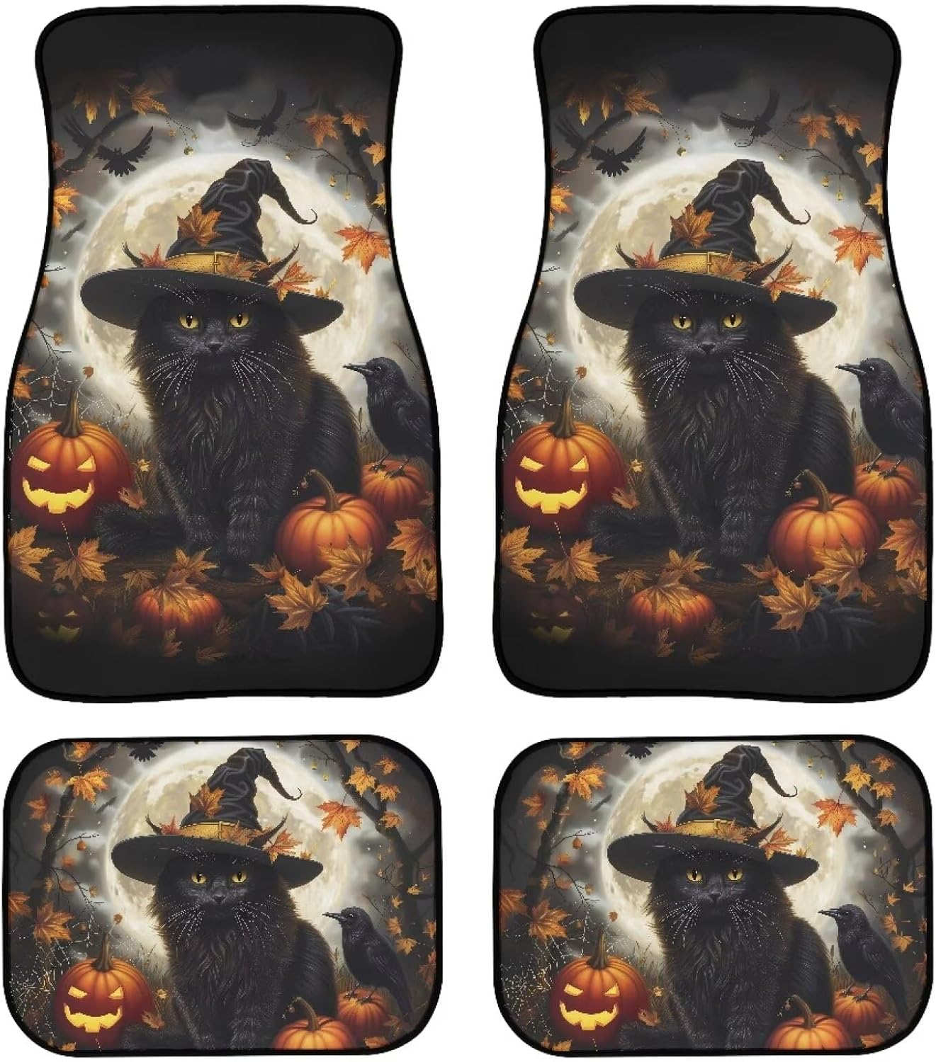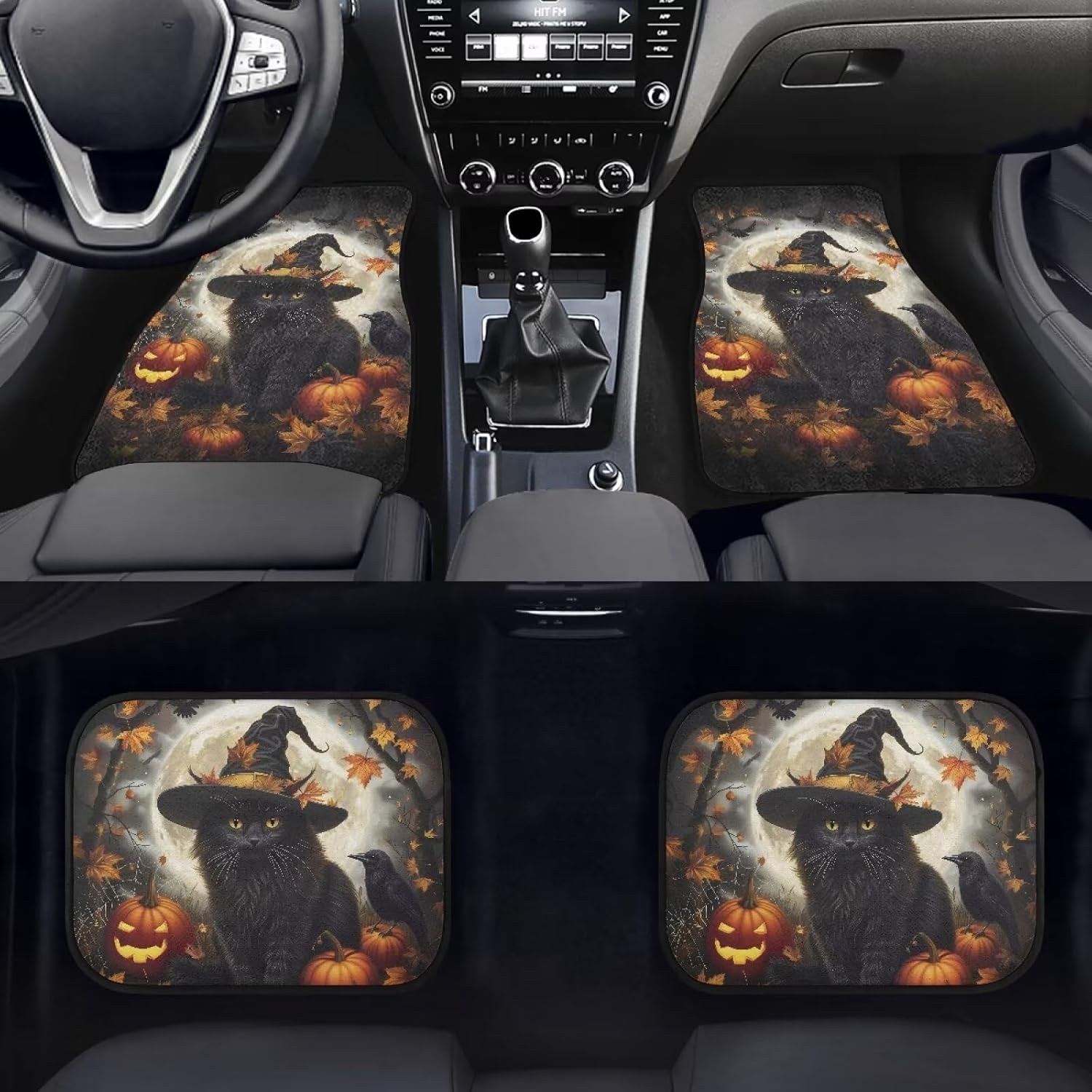 Halloween Car Mats Halloween Witch Cat With Pumpkin Car Floor Mats Black Orange