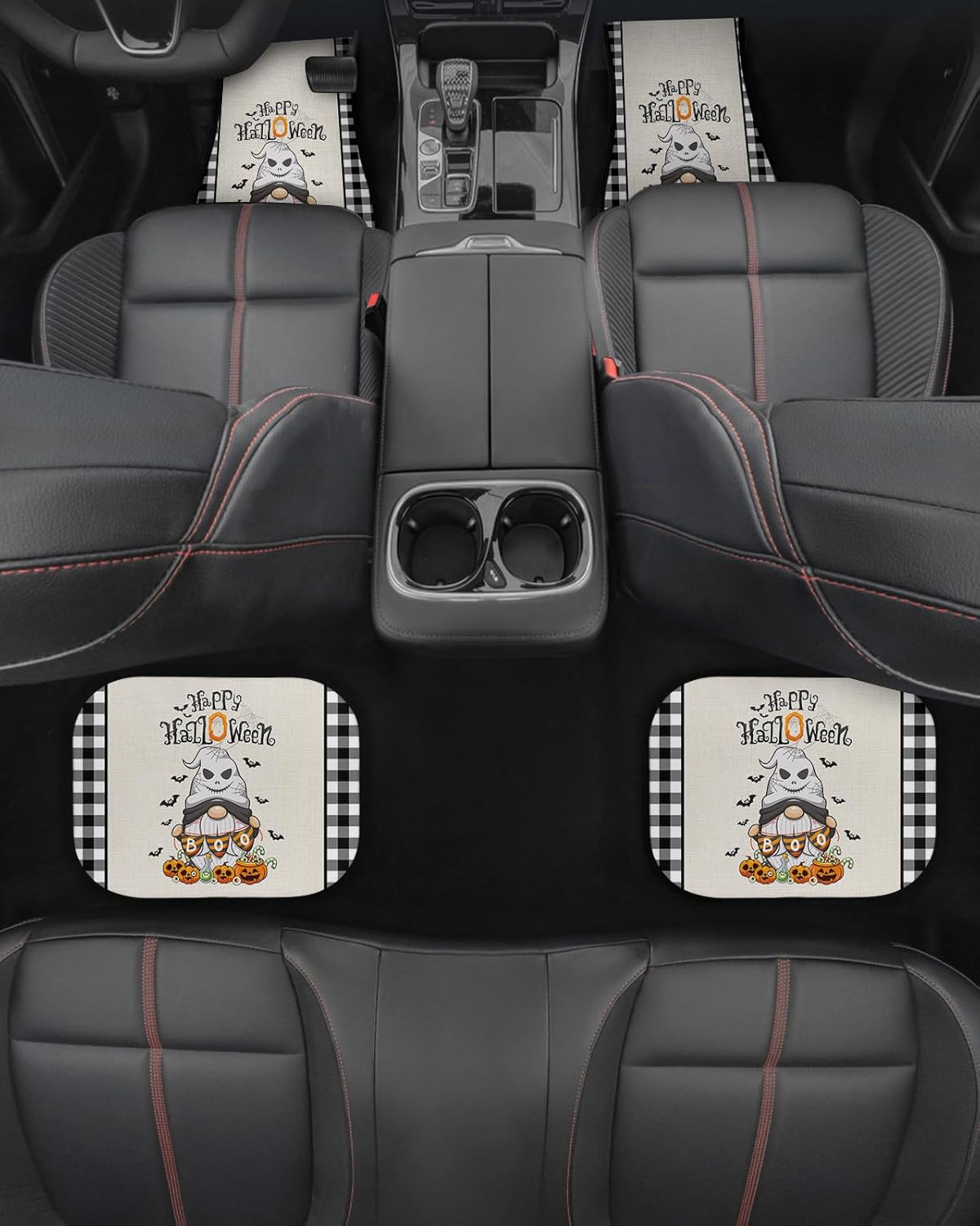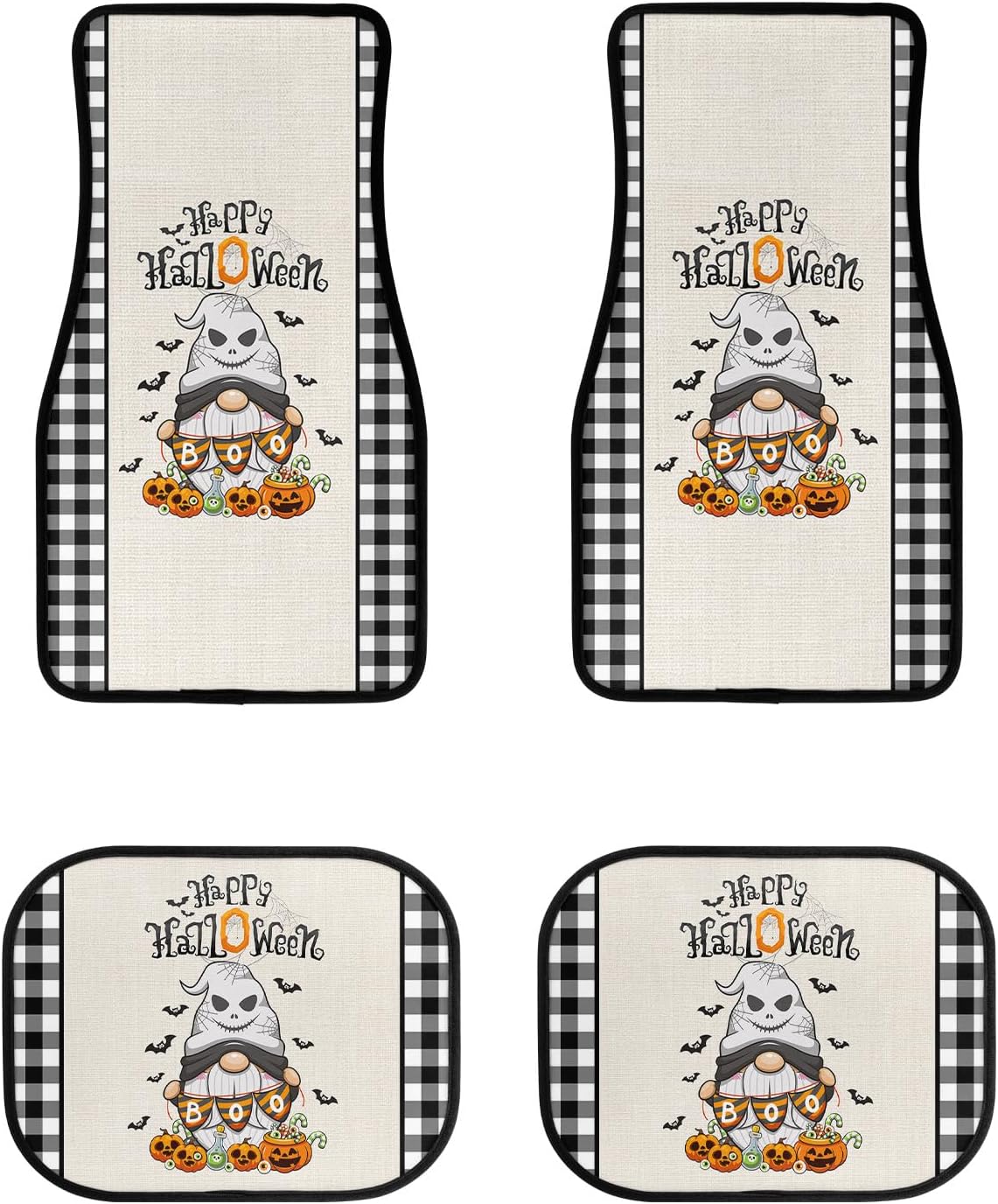 Halloween Car Mats Happy Halloween Ghost Boo Checkered Pattern Car Floor Mats Black White