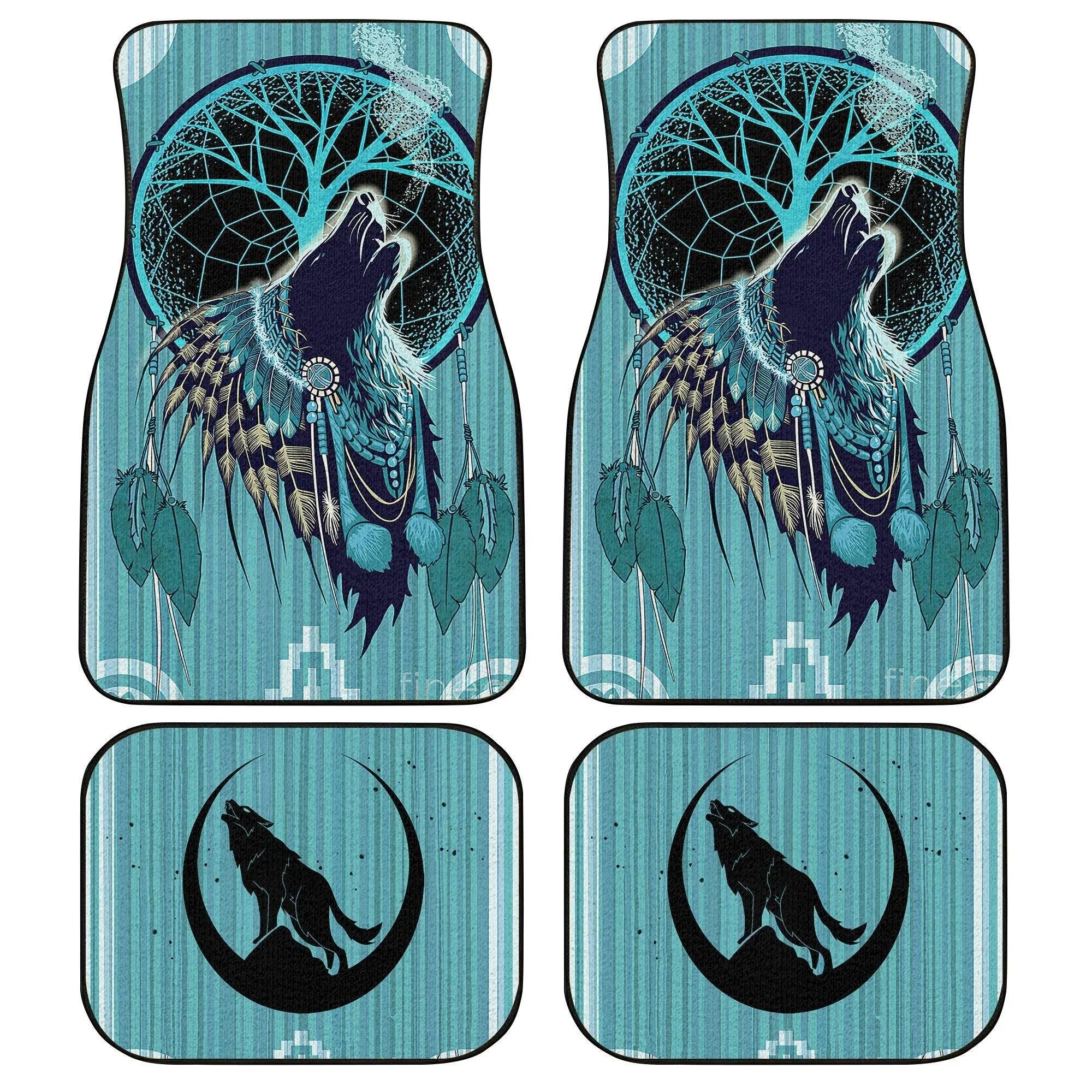 Native American Car Mats Native American Wolf Dreamcatcher Car Floor Mats Blue