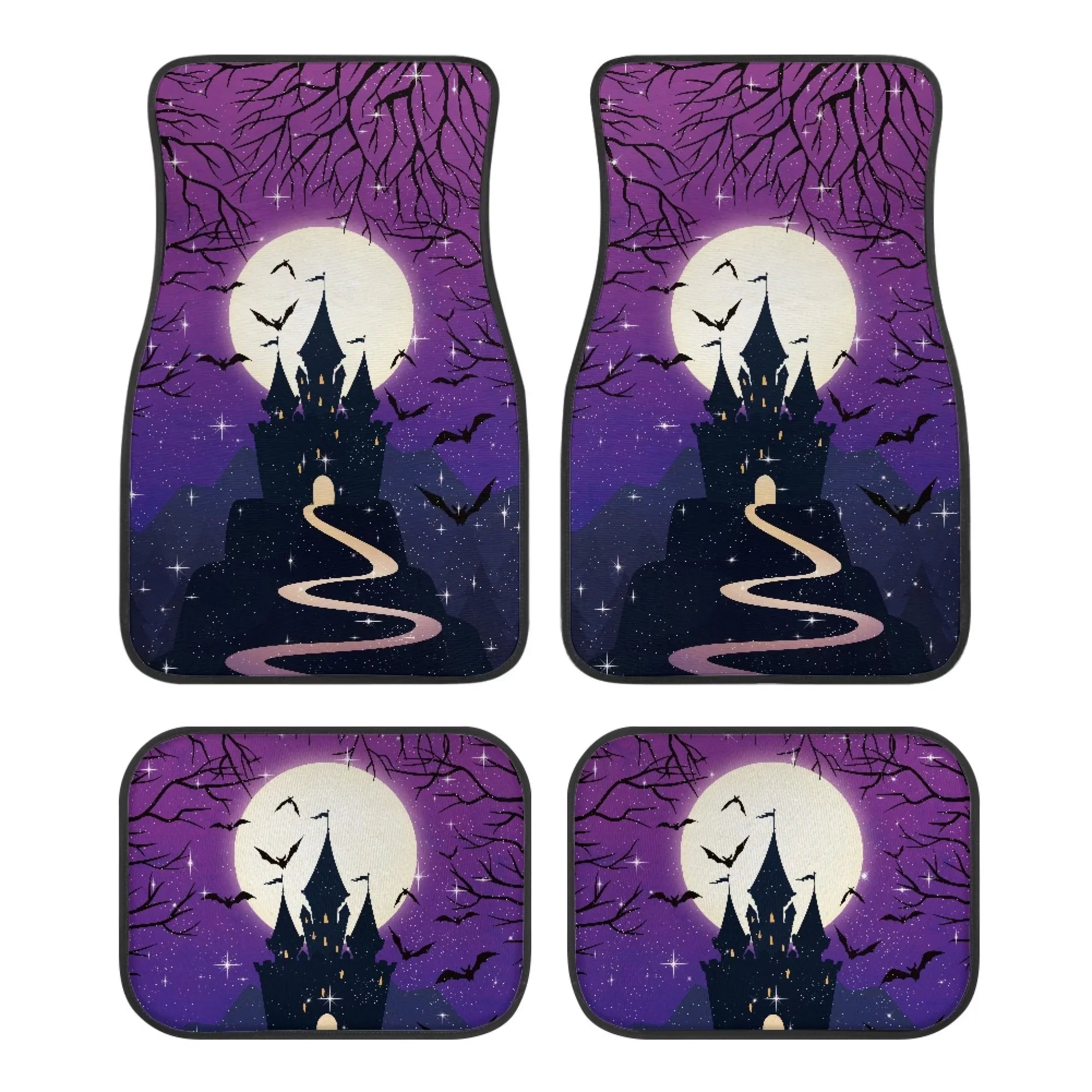 Halloween Car Mats Road To Haunted Castle Under Moonlight Car Floor Mats Black Purple