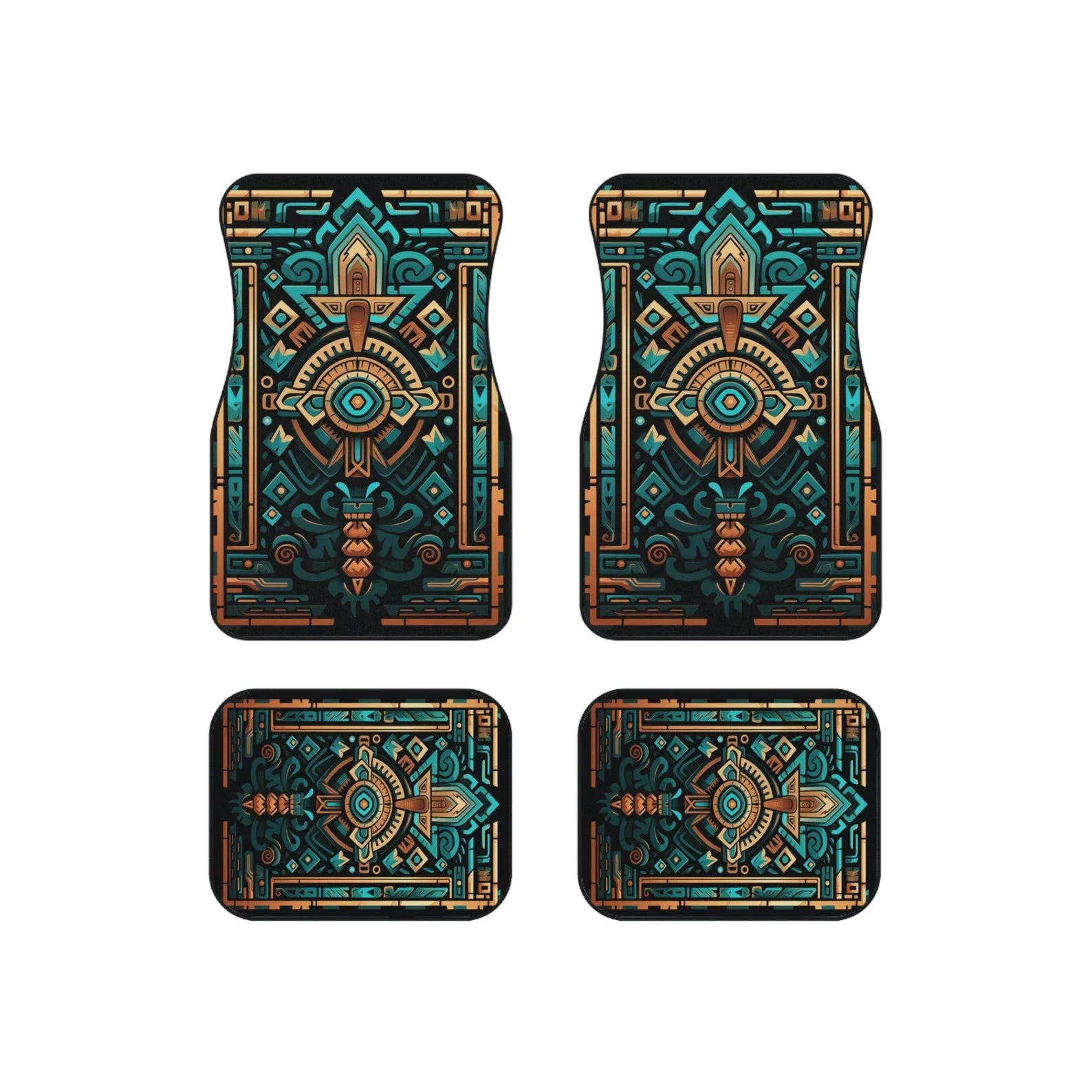 Native American Car Mats Tribal Aztec Geometric Style Pattern Car Floor Mats Green