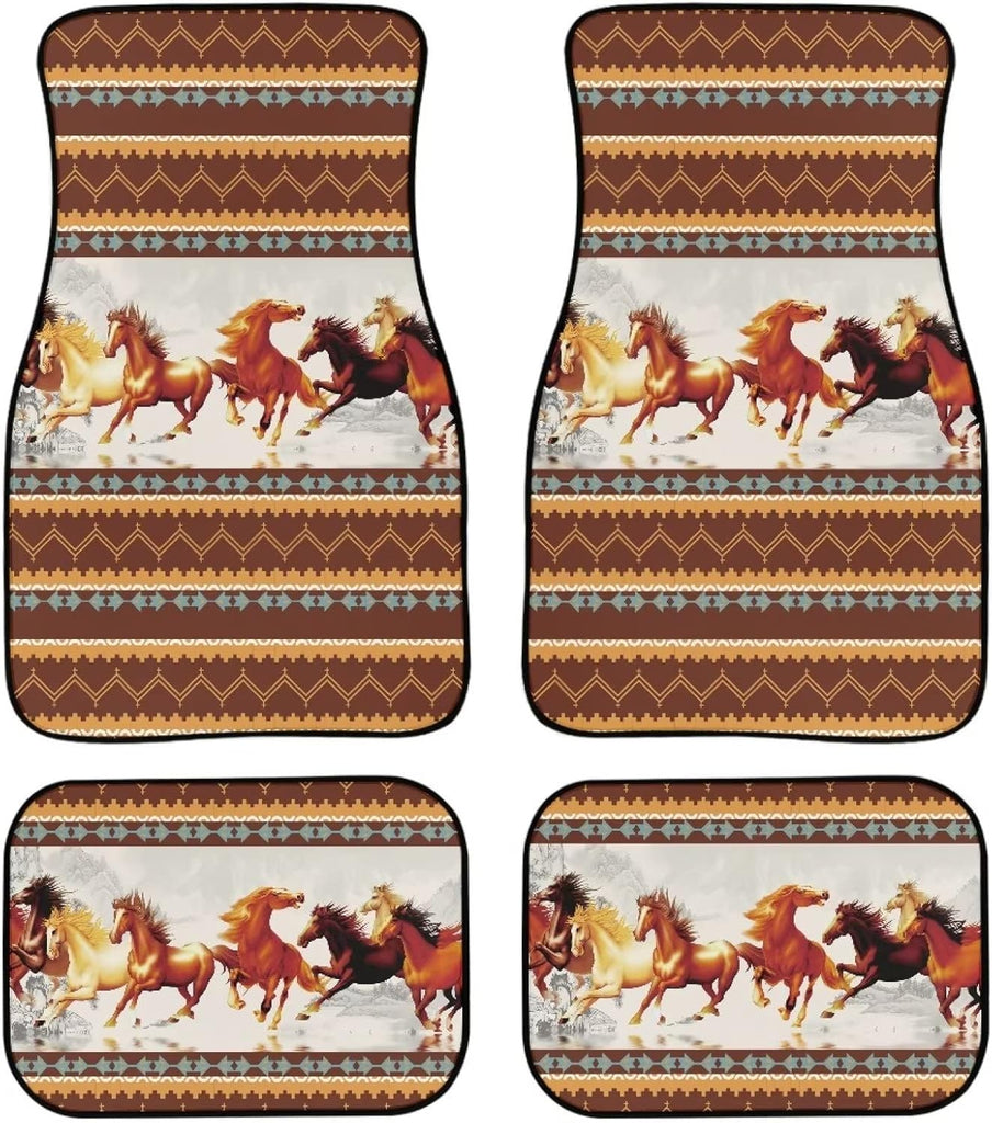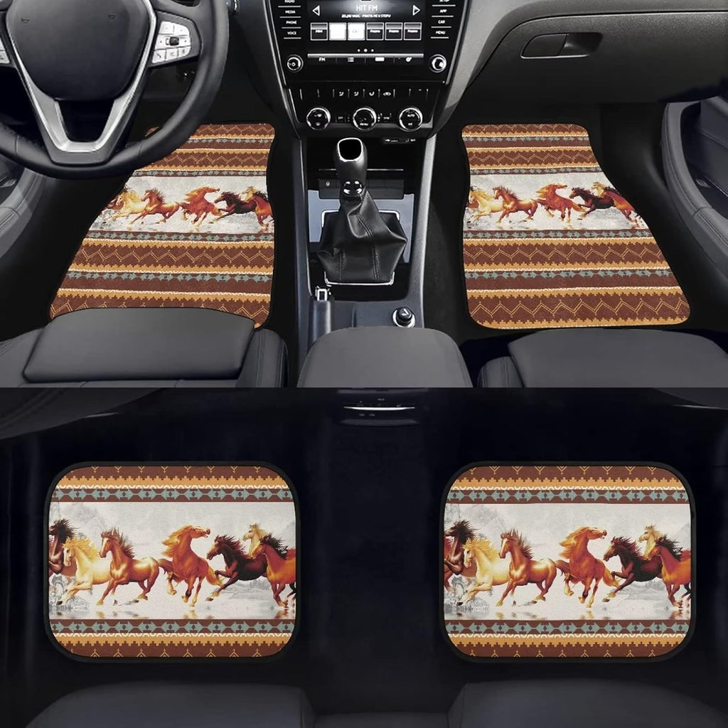 Native American Car Mats Running Native American Horse Graphic Car Floor Mats Brown