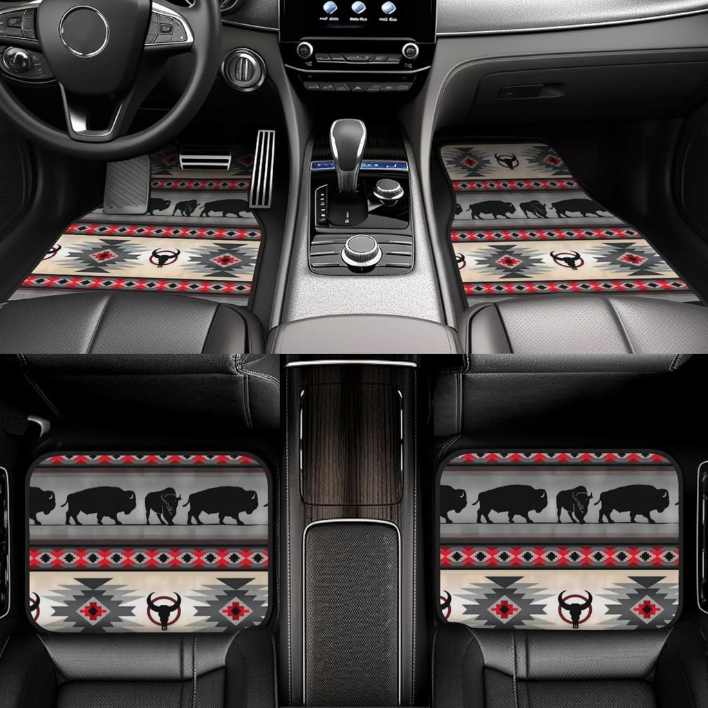 Native American Car Mats Native American Indian Bull Silhoutte Pattern Car Floor Mats Colorful