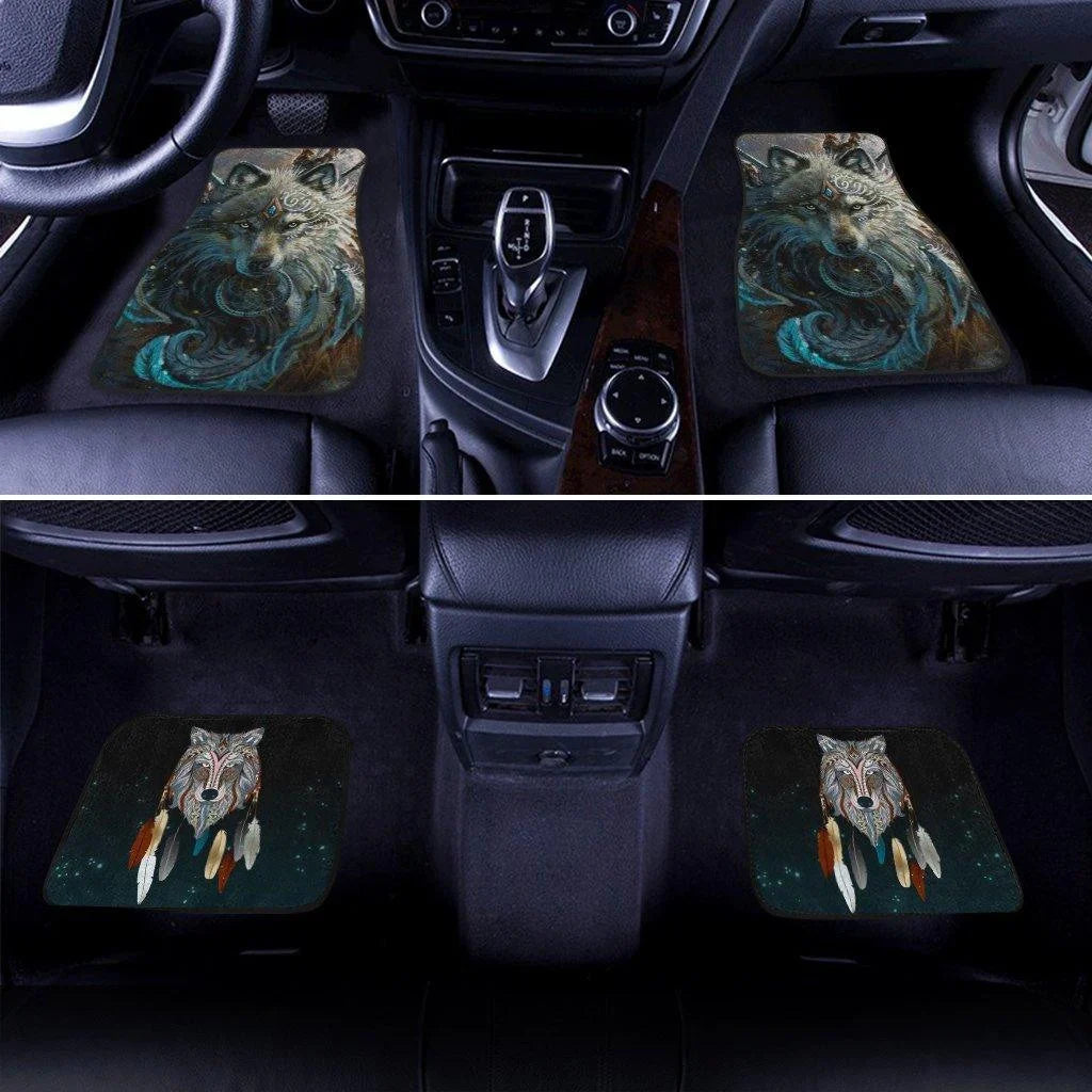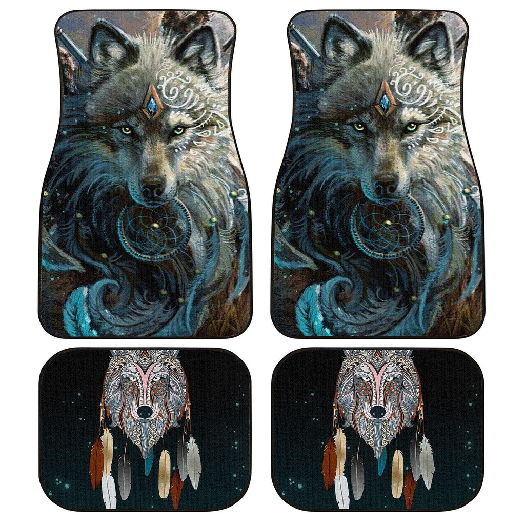Native American Car Mats Native American Wolf Dreamcatcher Art Car Floor Mats Gray
