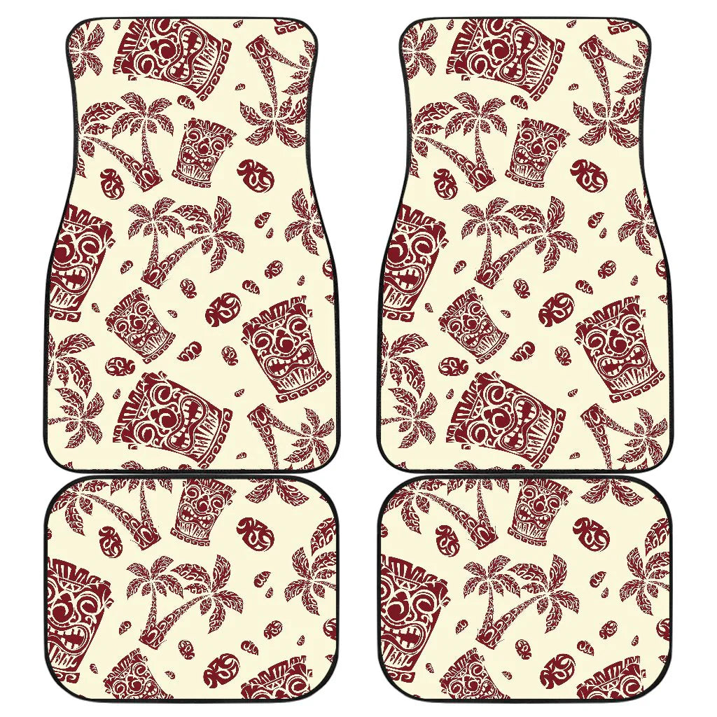 Native American Car Mats Tribal Tiki Palm Tree Pattern Car Floor Mats Red White