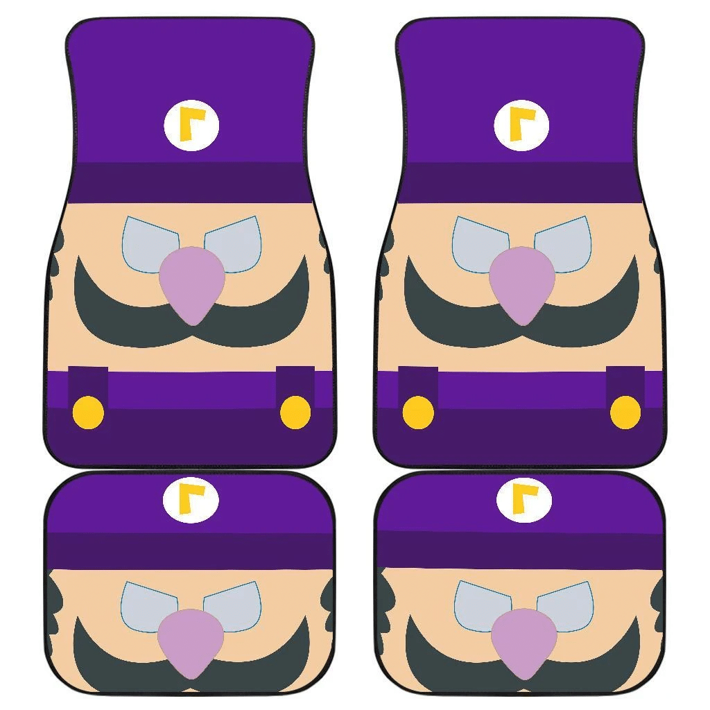 Mario Car Mats Game Character Waluigi Face Details Pattern Car Floor Mats Purple