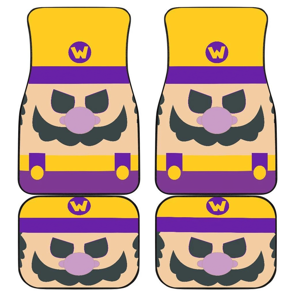 Mario Car Mats Game Character Wario Face Details Pattern Car Floor Mats Yellow Purple