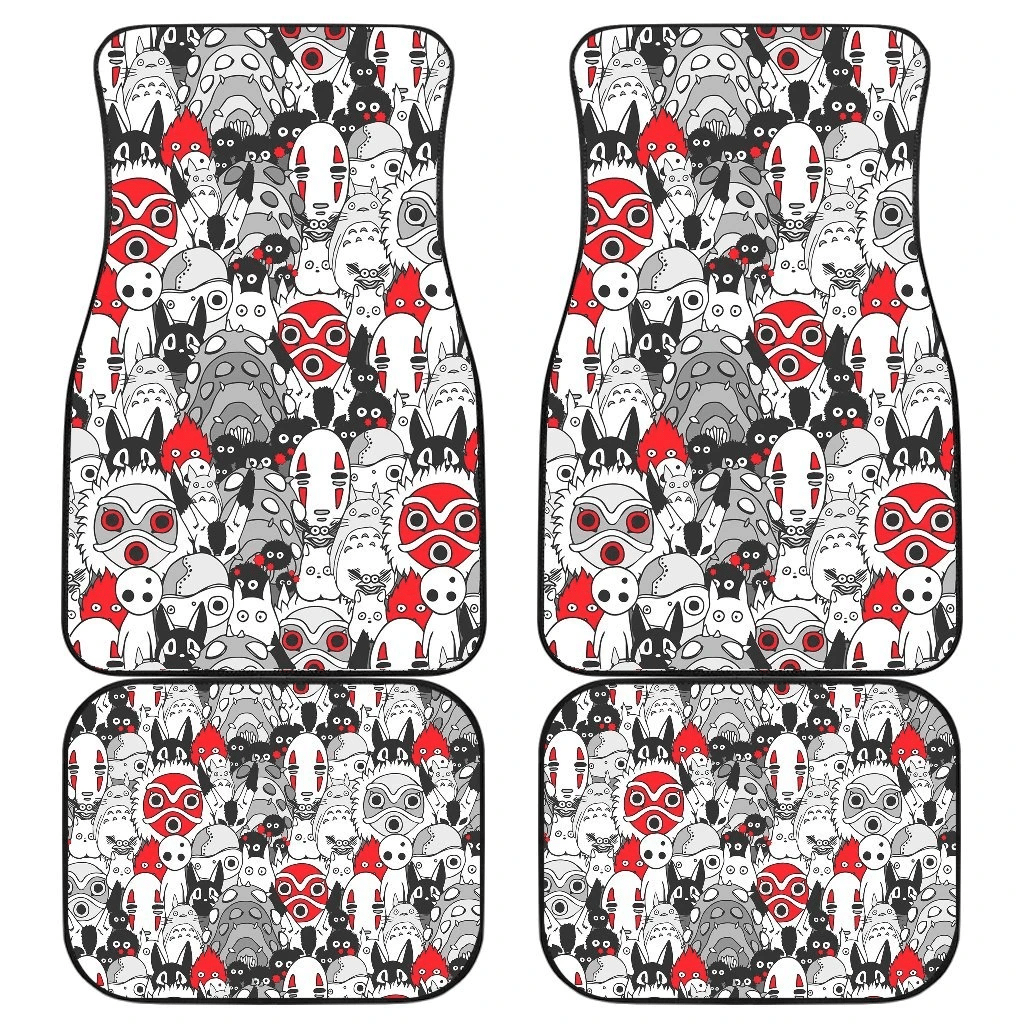 SGhibli Car Mats All Of SGhibli Masks Characters Doodle Pattern Car Floor Mat White Red