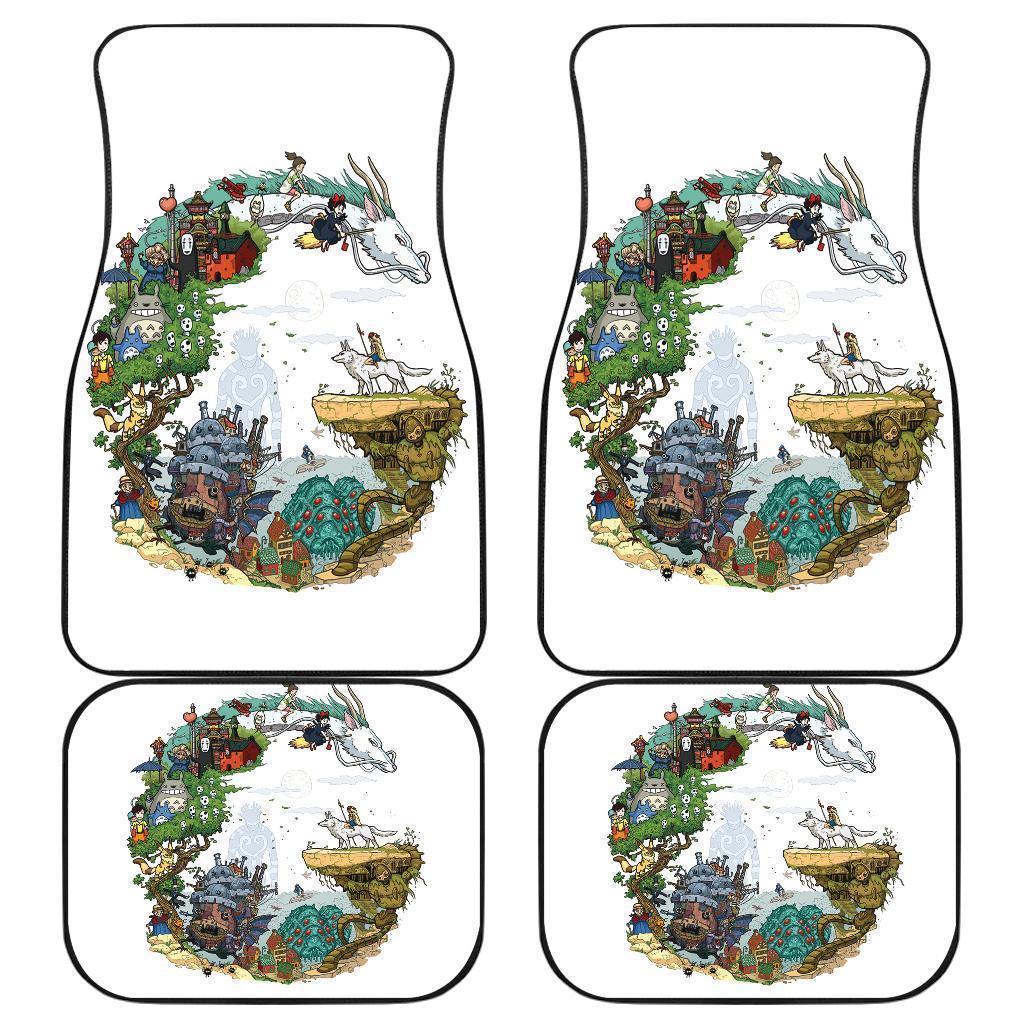 SGhibli Car Mats SGhibli All Famous Scene Characters Pattern Car Floor Mat White