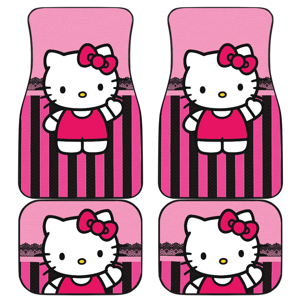 Hello Kitty Car Mats Hello Kitty Waving Hand Stripes Pattern Car Floor Mats Black Pink