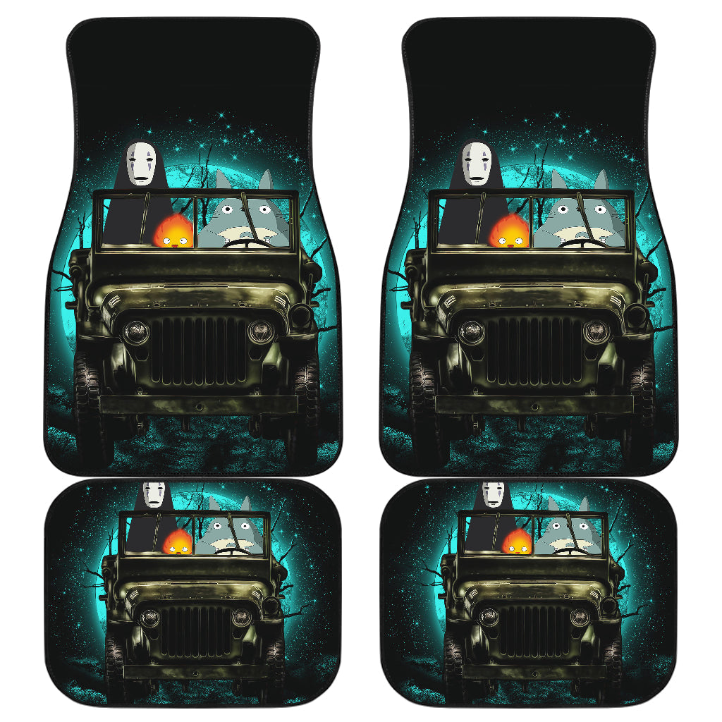 SGhibli Car Mats SGhibli Magical Animals And Character On The Moon Car Floor Mats Blue