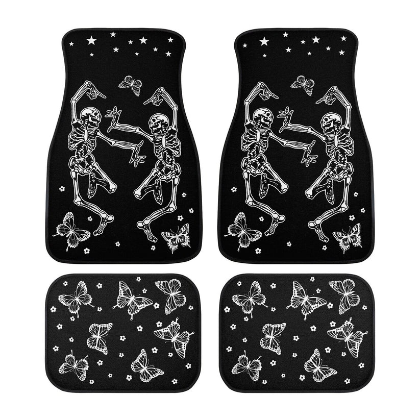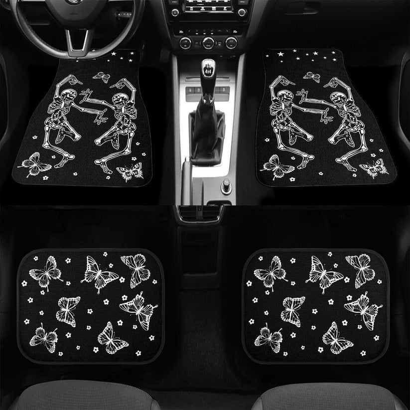 Halloween Car Mats Halloween Dancing Skeleton Butterlies Car Floor Mats Black White