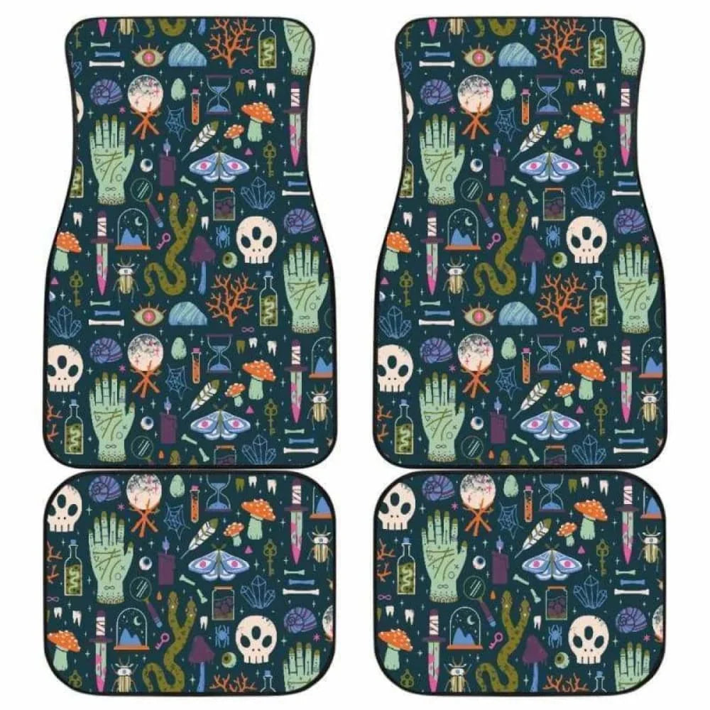 Halloween Car Mats Halloween Witchcraft Items Pattern Car Floor Mats Blue Green