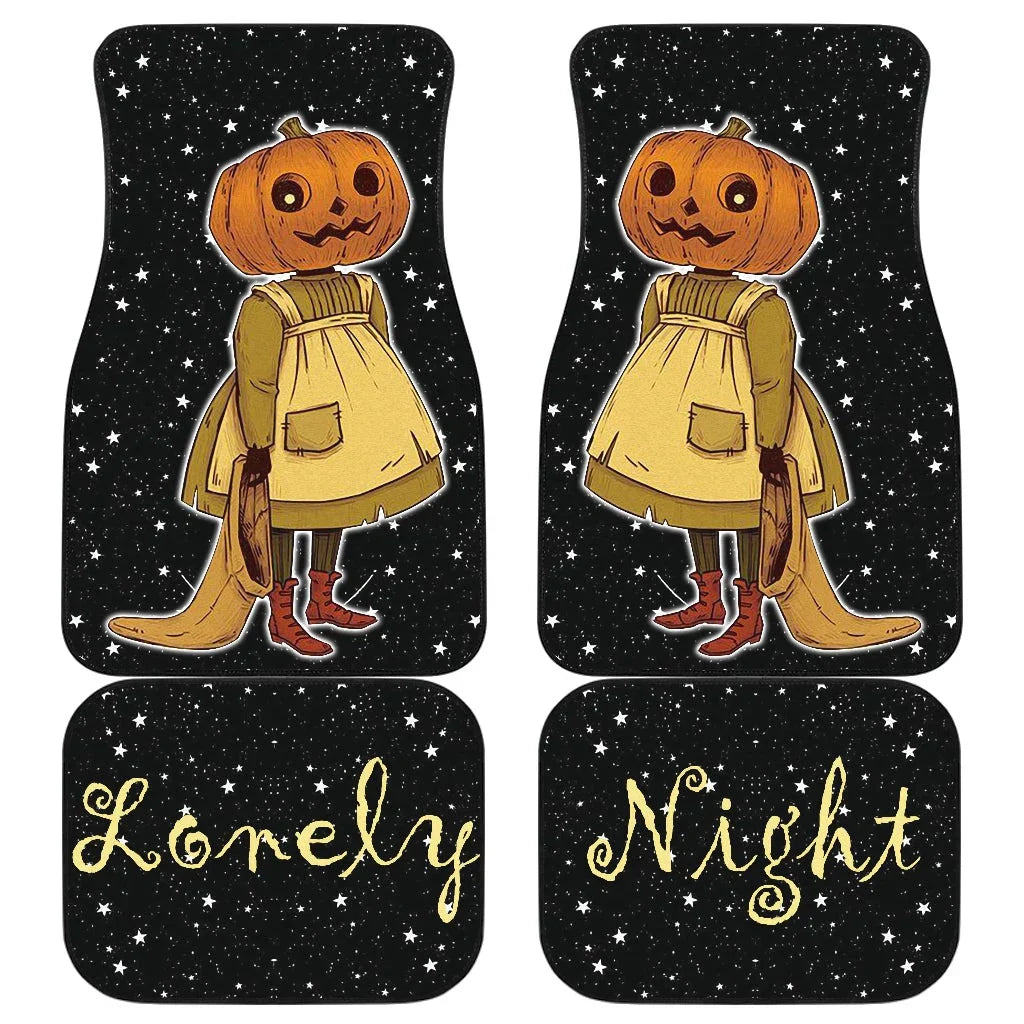 Halloween Car Mats Lonely Night Girl With Pumpkin Head Car Floor Mats Black Orange