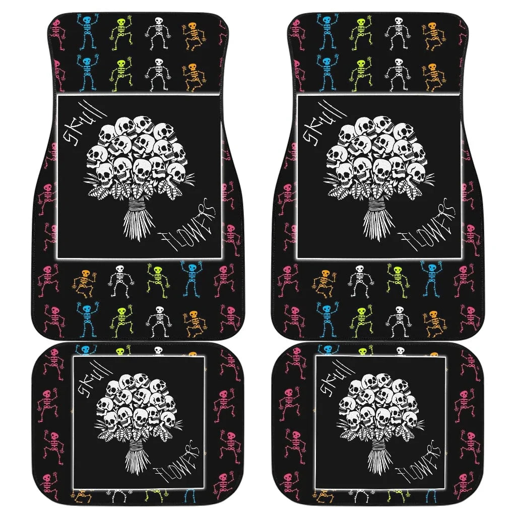 Halloween Car Mats Skeleton Flower Bouquet Tiny Patterns Car Floor Mats Brown White