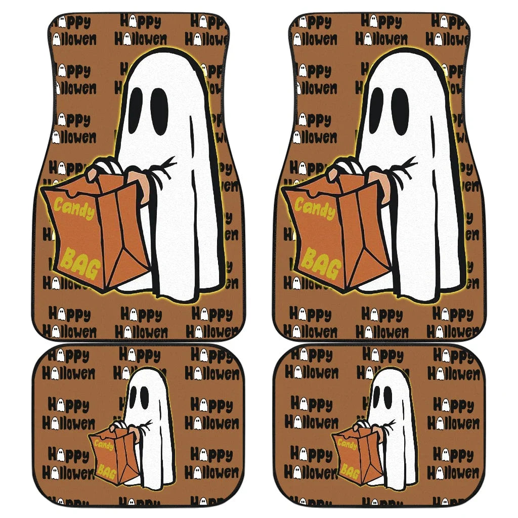 Halloween Car Mats Cute Ghost Cosplay Asking For Candy Bag Car Floor Mats Brown White