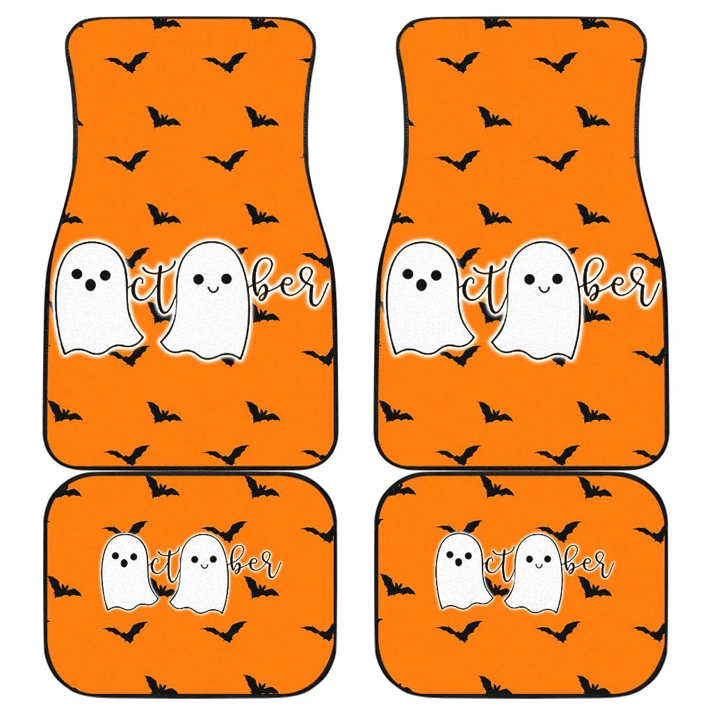 Halloween Car Mats Couple Ghost October Tiny Bat Patterns Car Floor Mats Orange