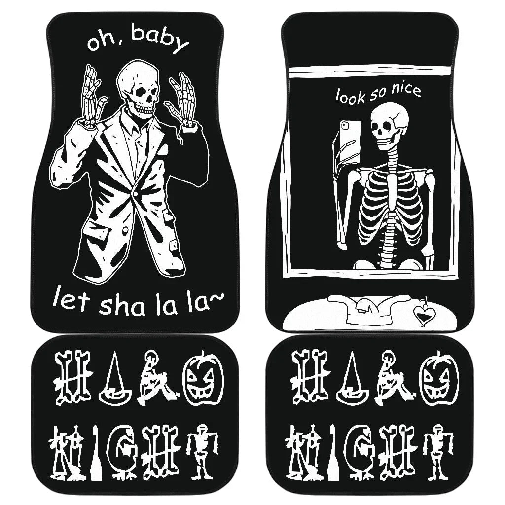 Halloween Car Mats Halo Night Skeleton Suit Mirror Selfie Car Floor Mats Brown White