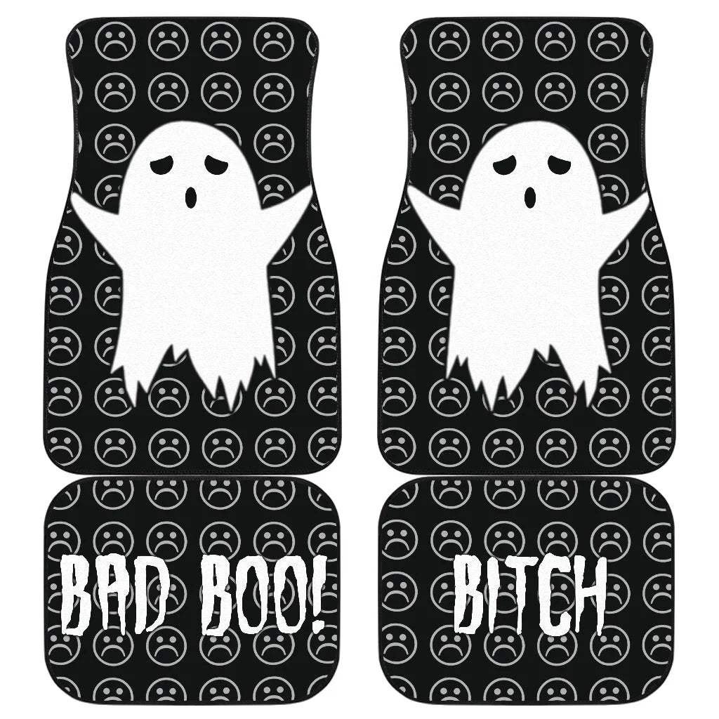Halloween Car Mats Bad Boo Sad Emotions Patterns Car Floor Mats Black White