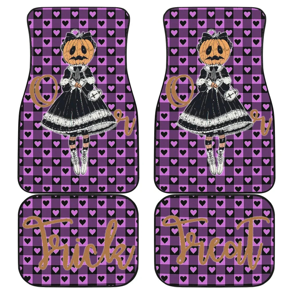 Halloween Car Mats Trick Or Treat Maid Girl With Pumpkin Head Car Floor Mats Purple Black