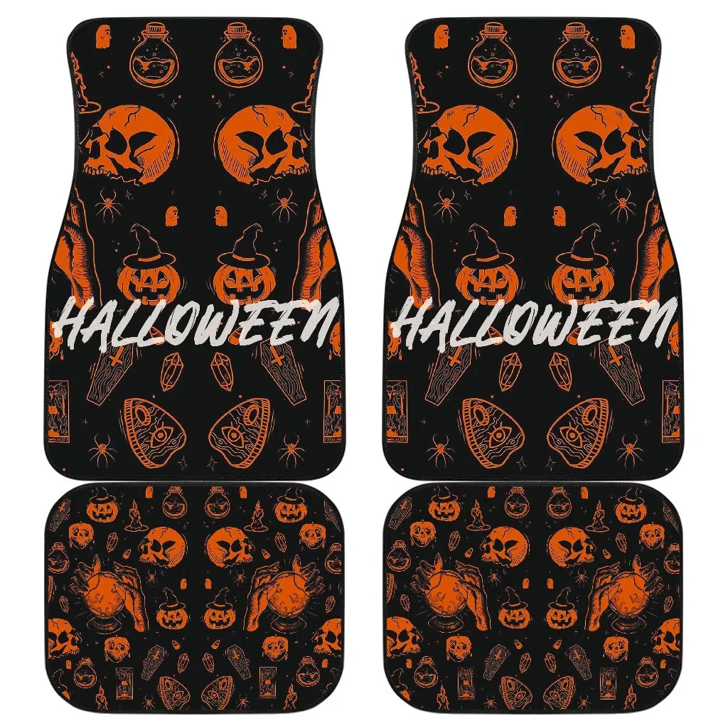 Halloween Car Mats Halloween Classic Symbol Items Pattern Car Floor Mats Black Orange