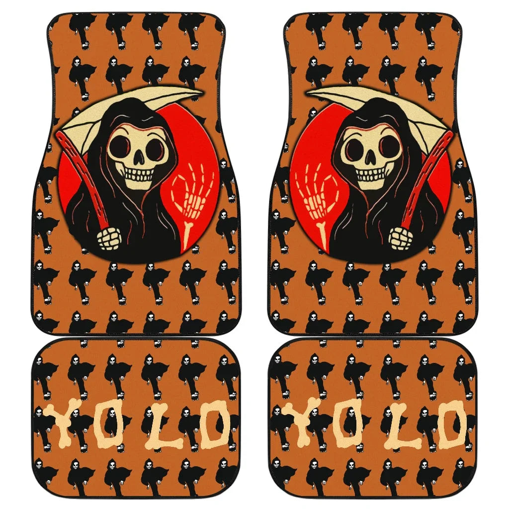 Halloween Car Mats Death Reaper Yolo Roller Skating Patterns Car Floor Mats Black Orange