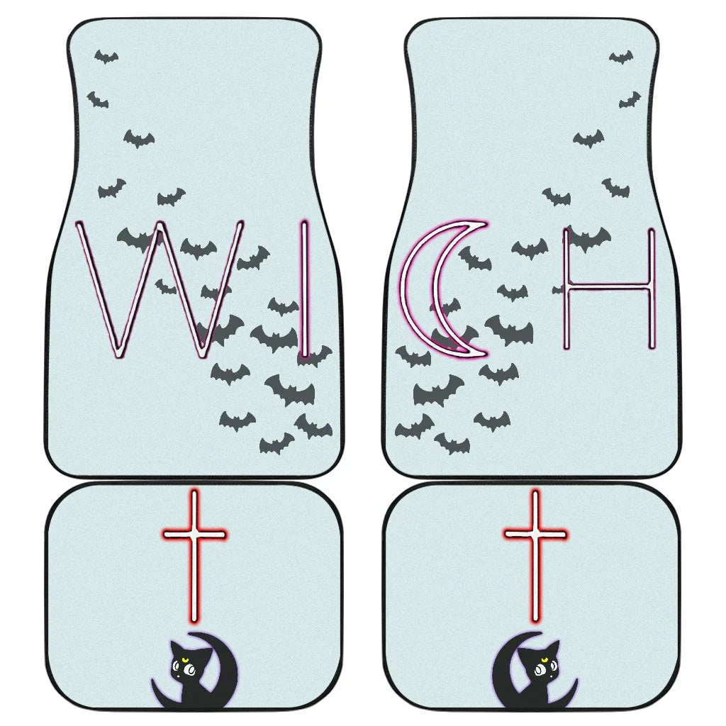 Halloween Car Mats Witch Text Luna Cat Gothic Moon Flying Bat Car Floor Mats Black Blue