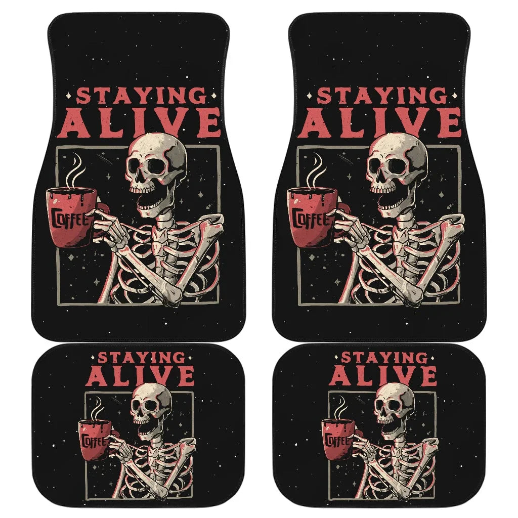 Halloween Car Mats Staying Alive Skeleton Drinking Coffee Car Floor Mats Black Red
