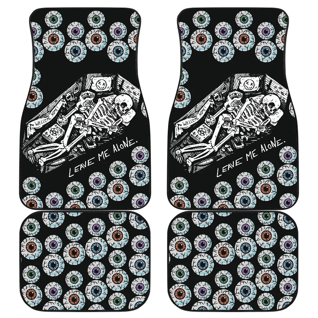 Halloween Car Mats Skeleton In Coffin Leave Me Alone Car Floor Mats Black White