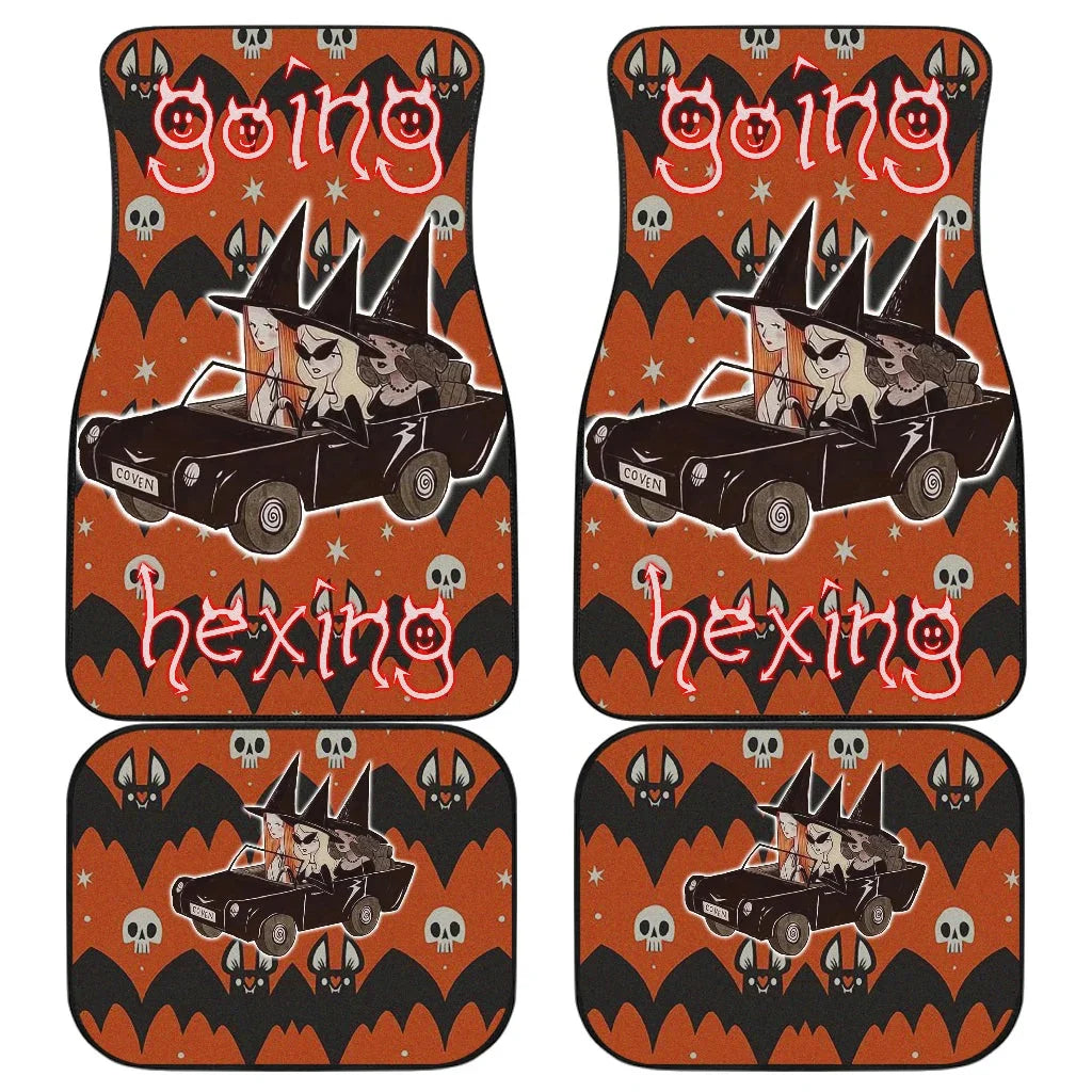 Halloween Car Mats Going Hexing Coven Girls Bat And Skeleton Patterns Car Floor Mats Black Orange