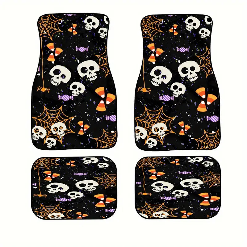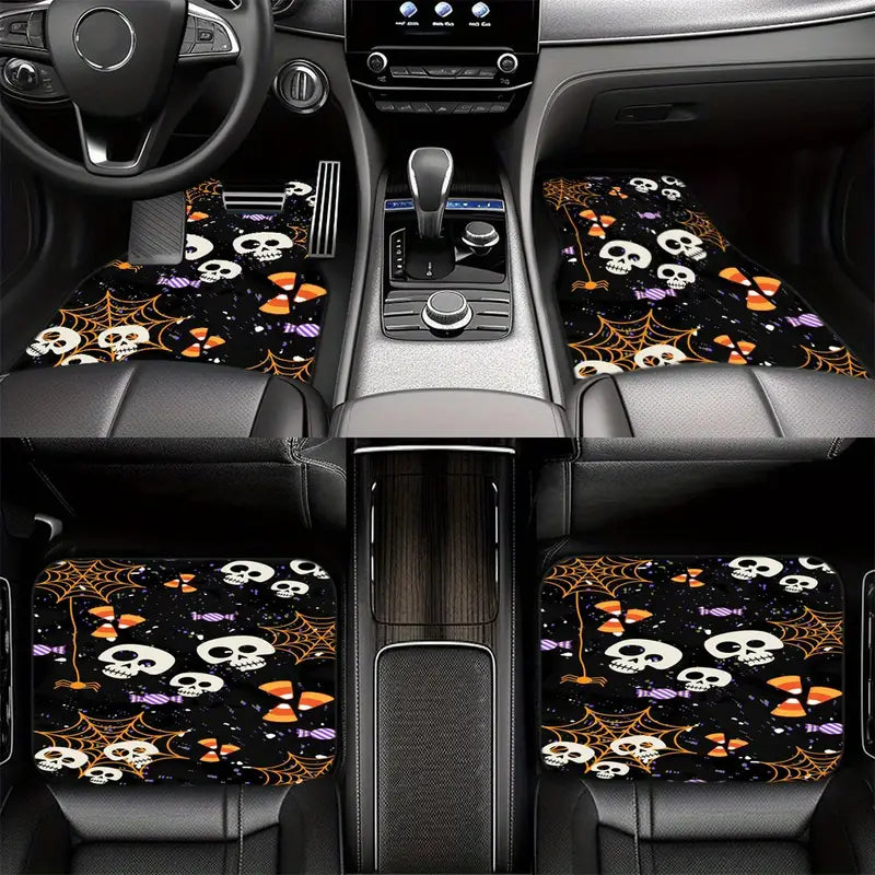 Halloween Car Mats Halloween Skull Spider Web Candies Pattern Car Floor Mats Black Orange
