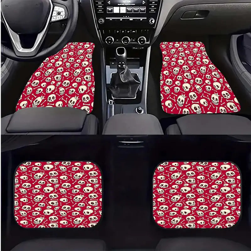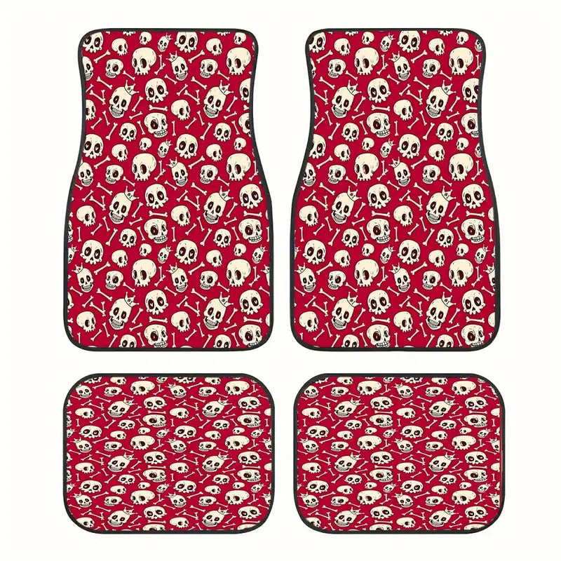 Halloween Car Mats Halloween Skull With Crown Bones Pattern Car Floor Mats Red White