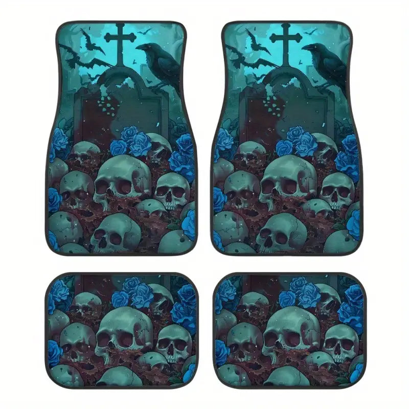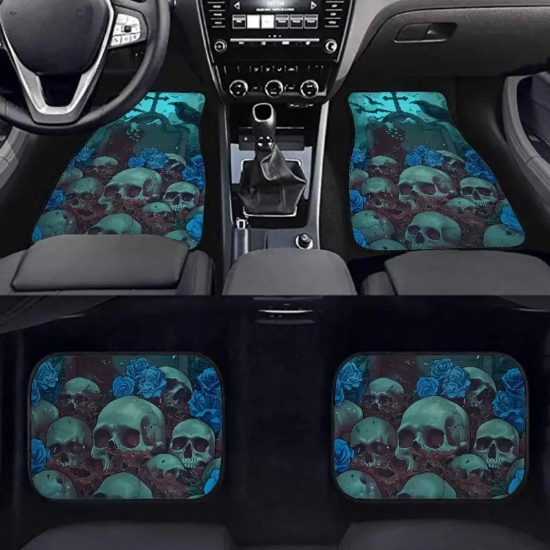Halloween Car Mats Halloween Skull And Raven Graphic Car Floor Mats Blue
