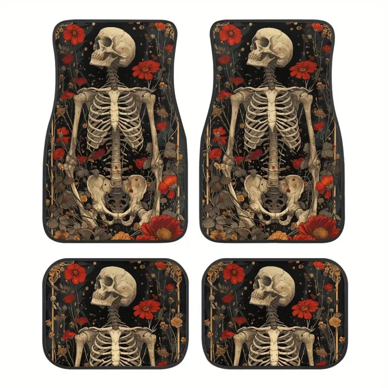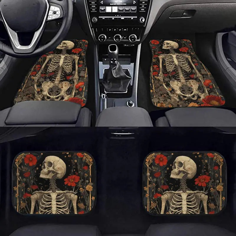 Halloween Car Mats Halloween Floral And Skull Graphic Car Floor Mats Black Red