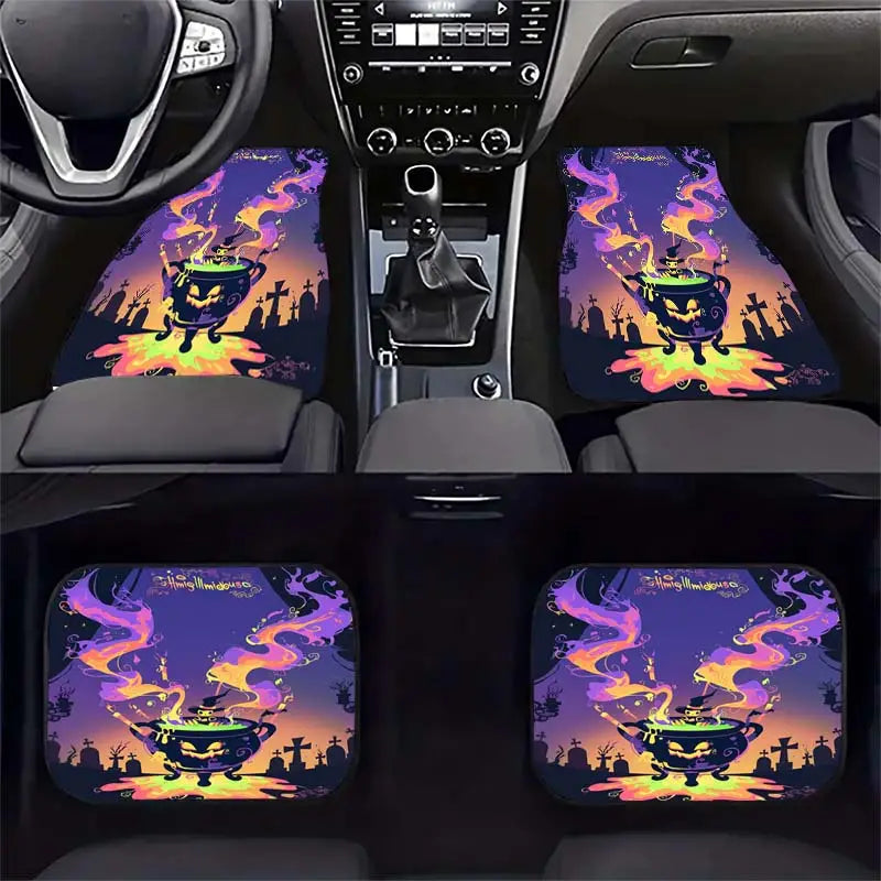Halloween Car Mats Halloween Witch Magic Caulron Graphic Car Floor Mats Colorful