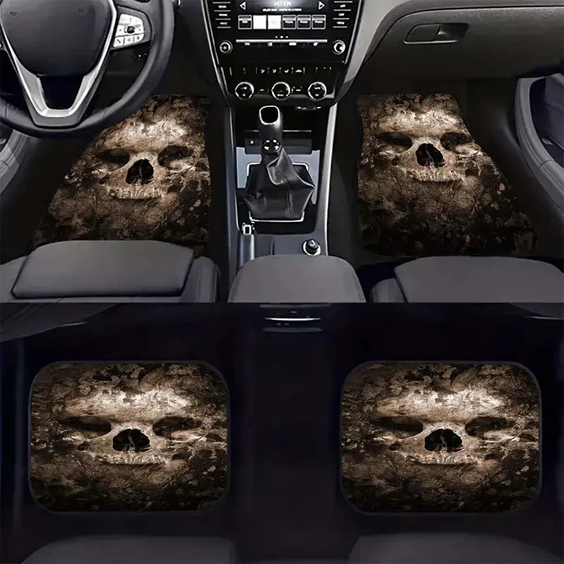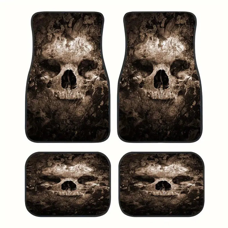 Halloween Car Mats Halloween Spooky Skull Graphic Car Floor Mats Brown