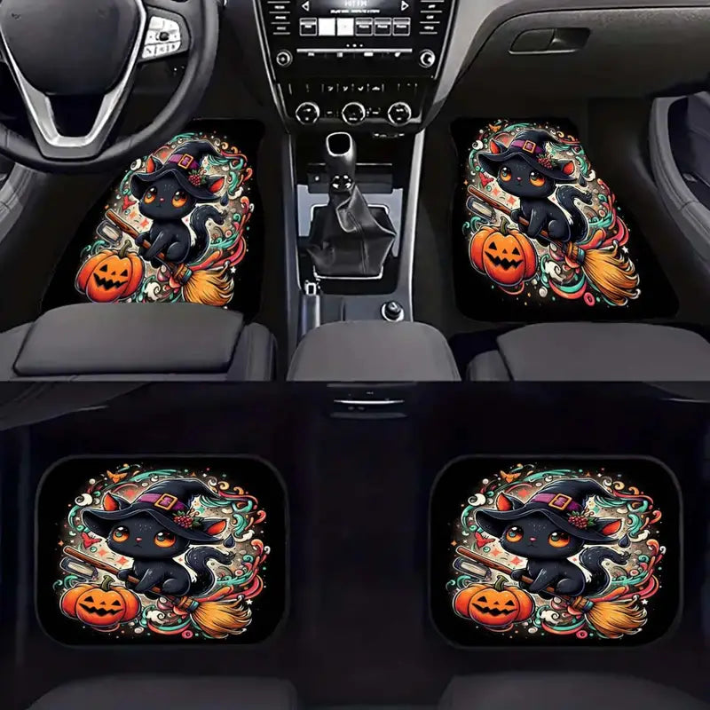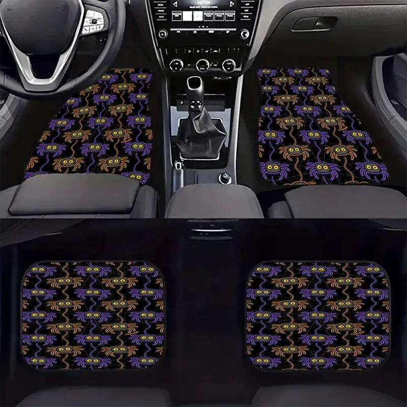 Halloween Car Mats Halloween Cartoon Cute Spider Pattern Car Floor Mats Black