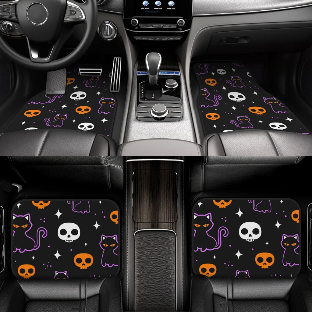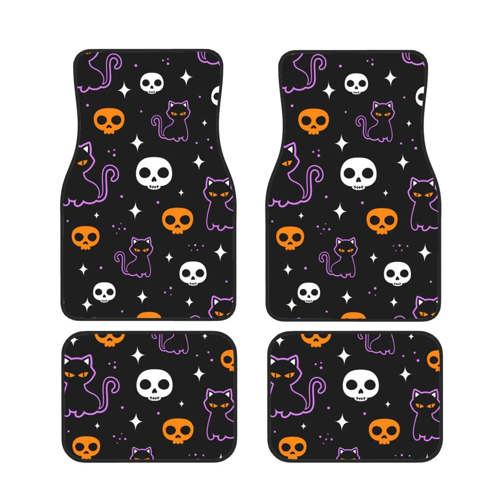 Halloween Car Mats Halloween Cute Cat Skull Star Pattern Car Floor Mats Black Purple