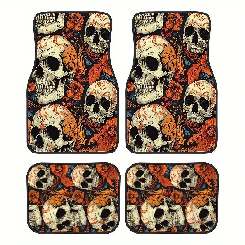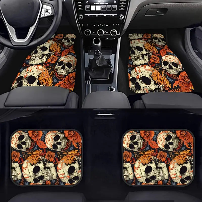 Halloween Car Mats Halloween Skull With Flower Pattern Car Floor Mats White Orange