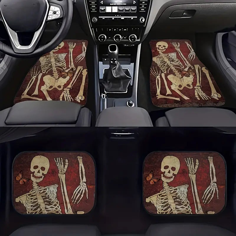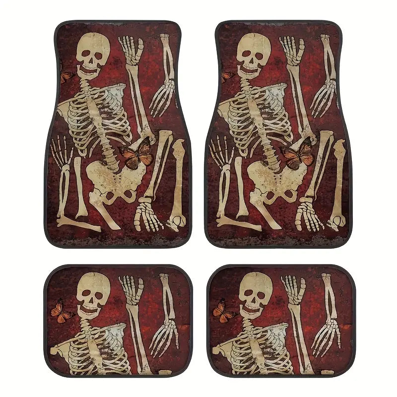 Halloween Car Mats Halloween Skeleton Parts Pattern Car Floor Mats Brown