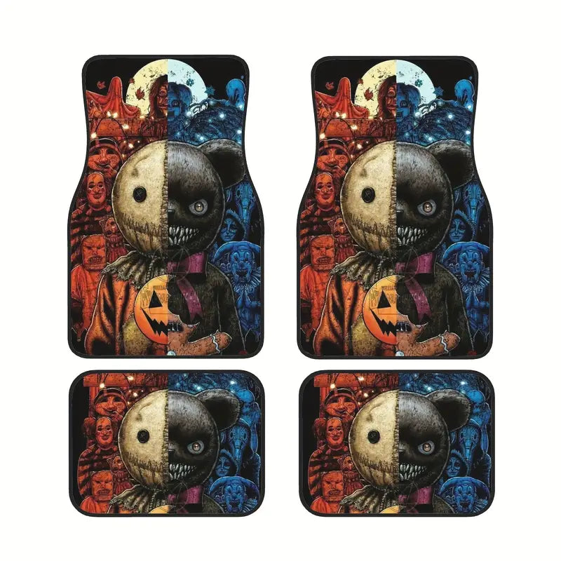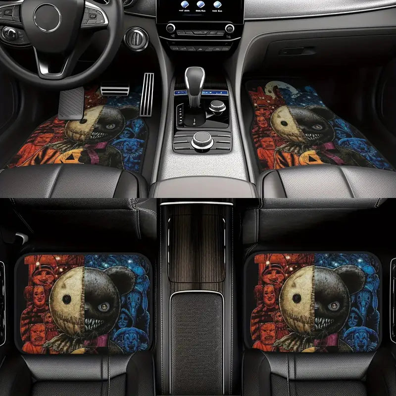 Halloween Car Mats Scary Halloween Characters Pattern Car Floor Mats Orange Blue
