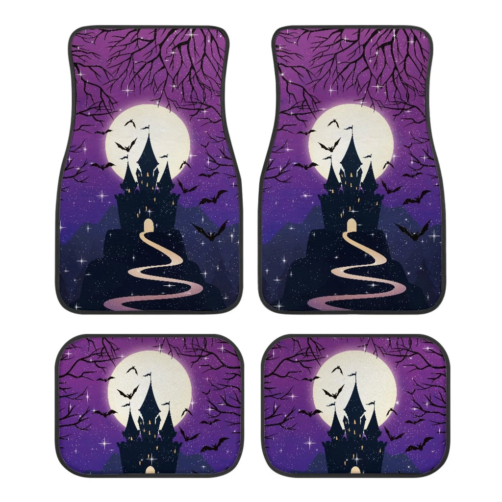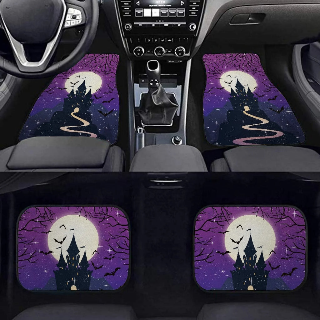 Halloween Car Mats Road To Haunted Castle Under Moonlight Car Floor Mats Black Purple