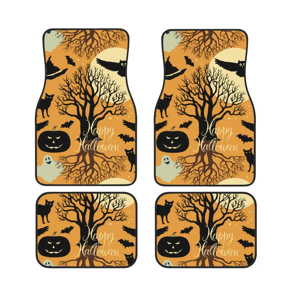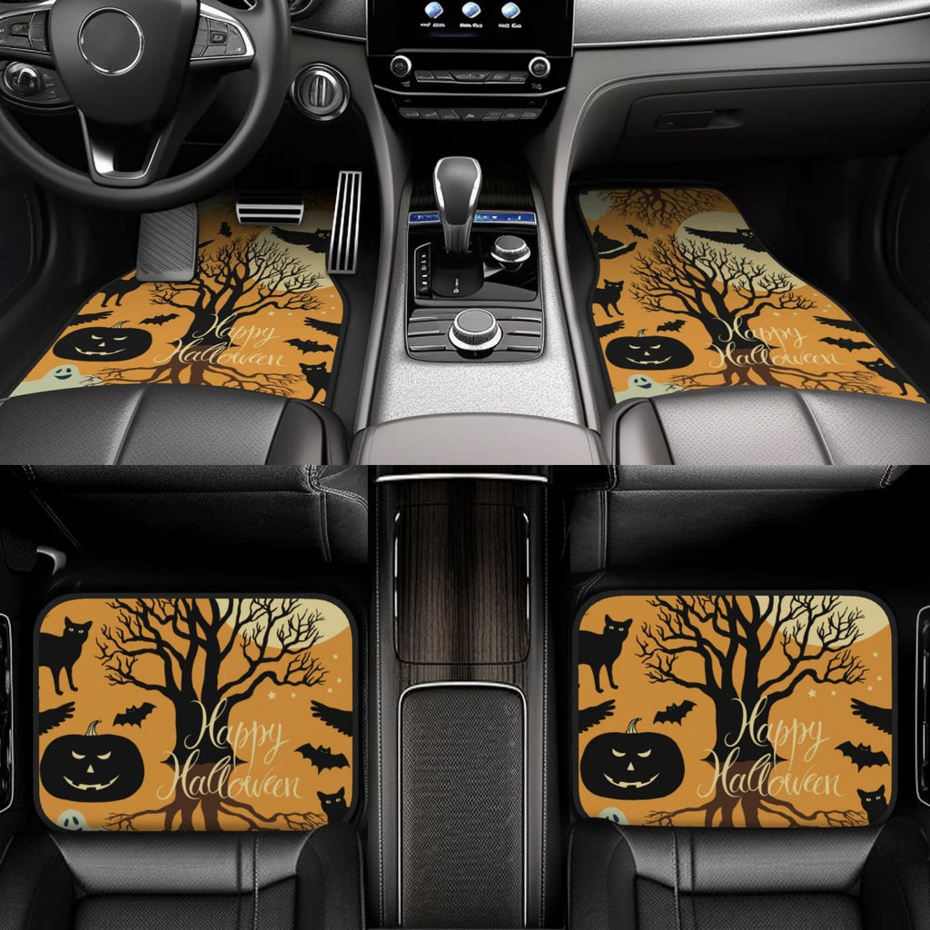 Halloween Car Mats Happy Halloween Haunted Tree Cat Pumpkin Car Floor Mats Black Orange