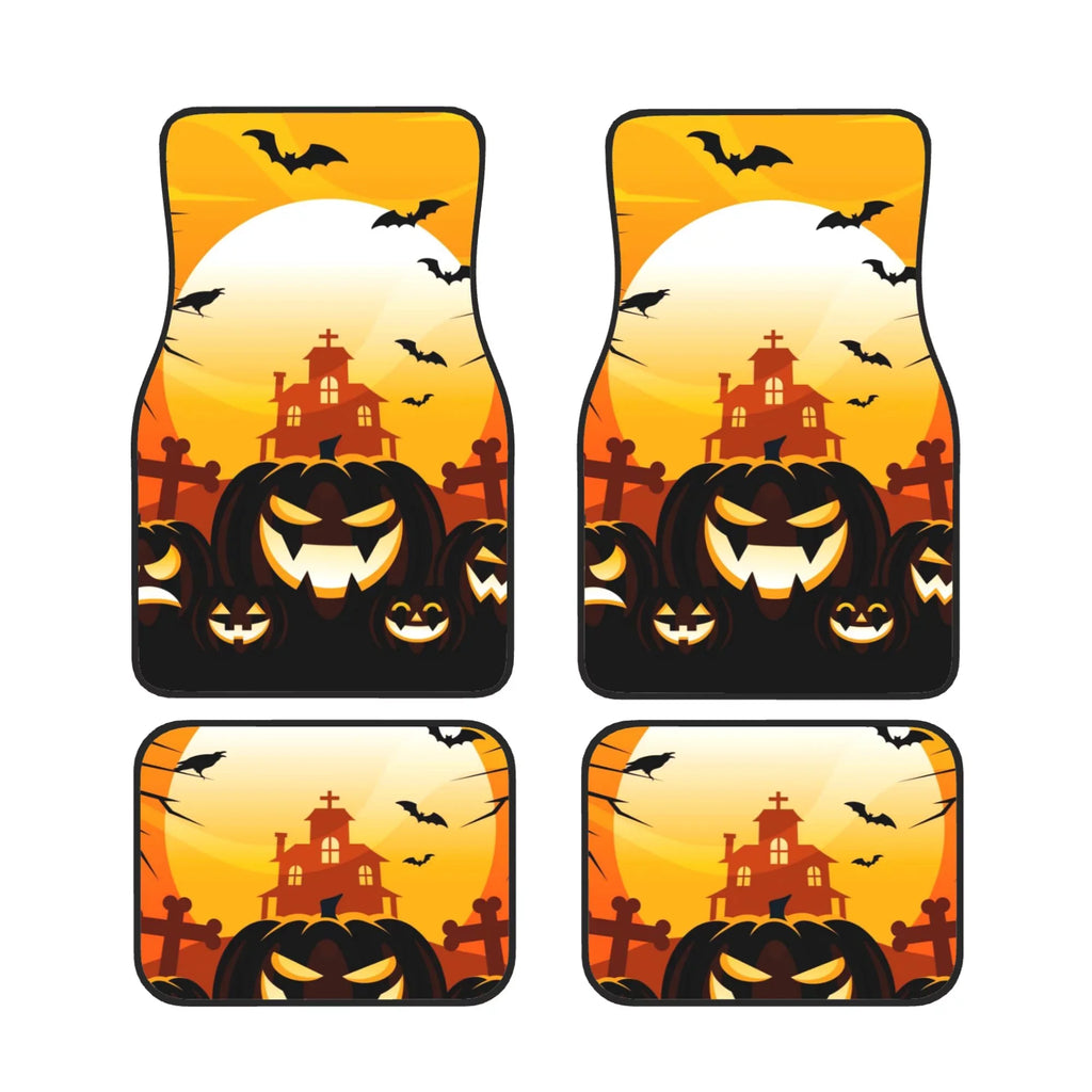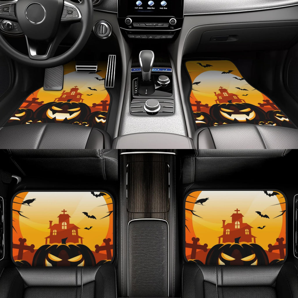 Halloween Car Mats Halloween Laughing Pumpkin Haunted House Car Floor Mats Black Orange
