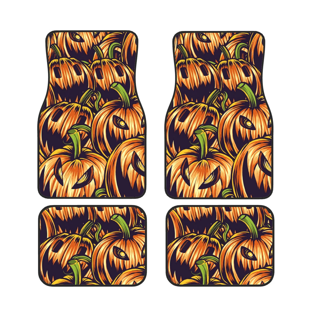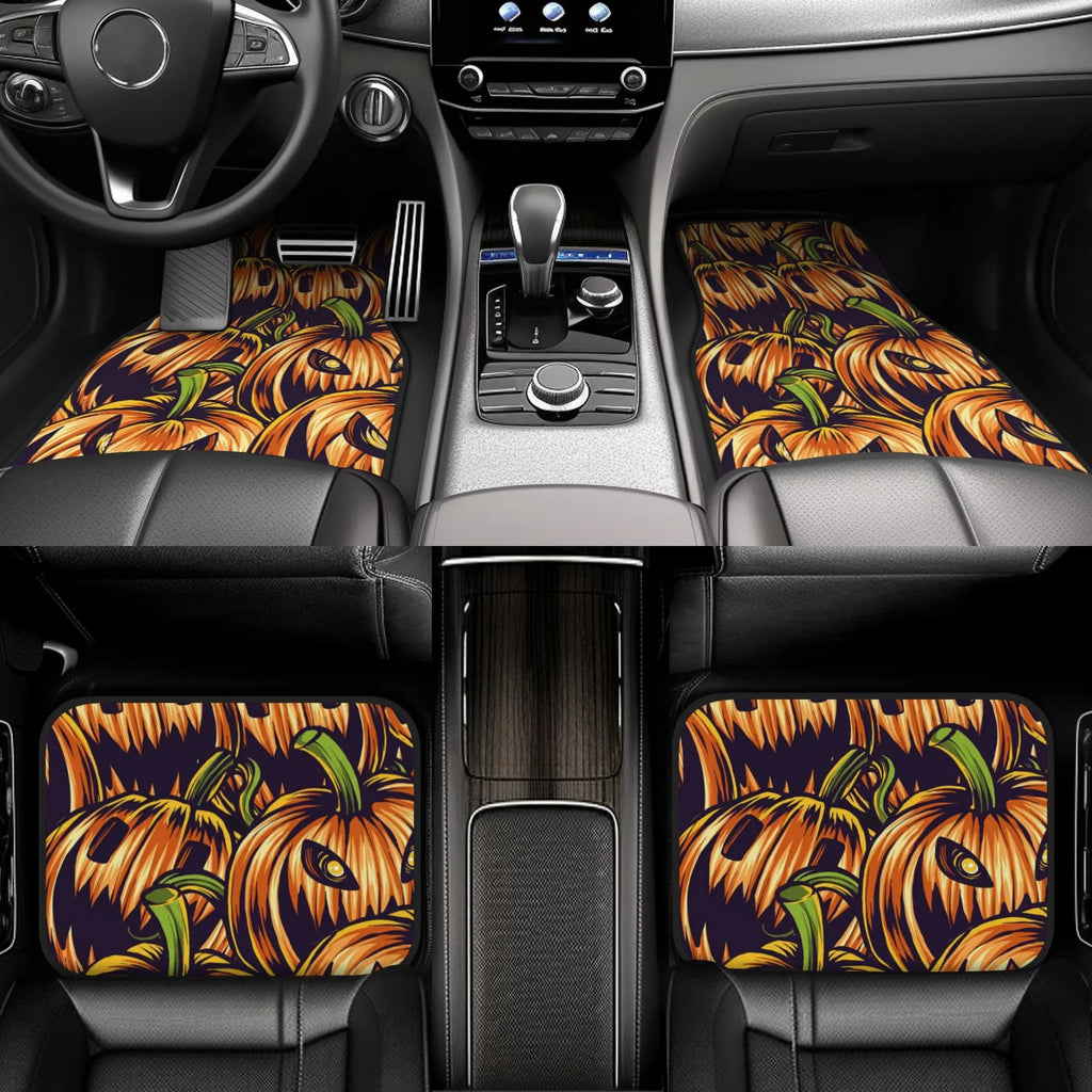 Halloween Car Mats Halloween Emotions Pumpkin Pattern Car Floor Mats Orange
