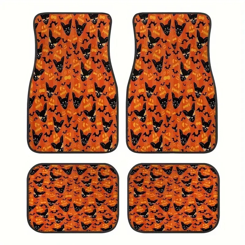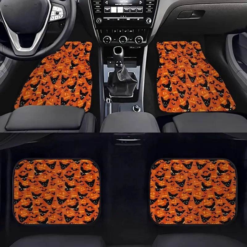 Halloween Car Mats Halloween Cat Scary Ghost Face Pattern Car Floor Mats Black Orange
