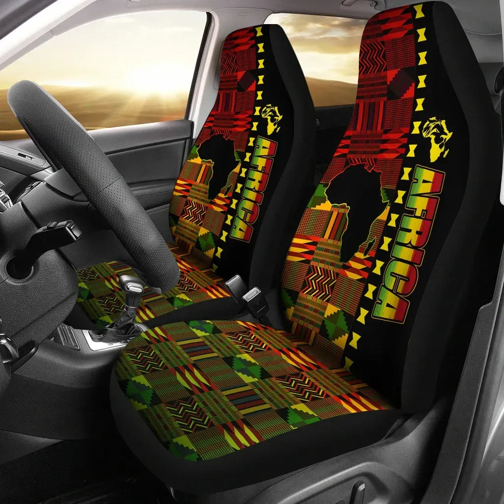 Juneteenth Car Seat Covers African Kente Map Tribal Pattern Seat Covers Colorful