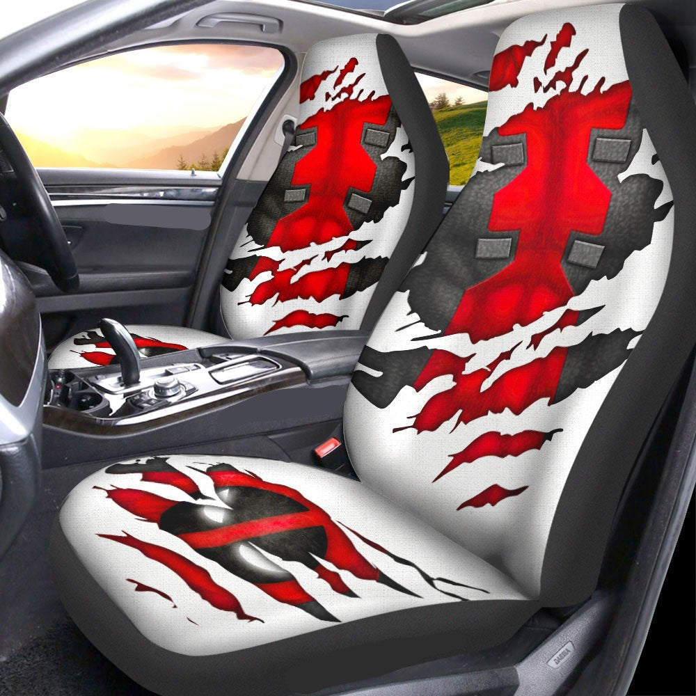 DP Car Seat Covers DP Suit Symbol Torn Fabric Seat Covers Red White