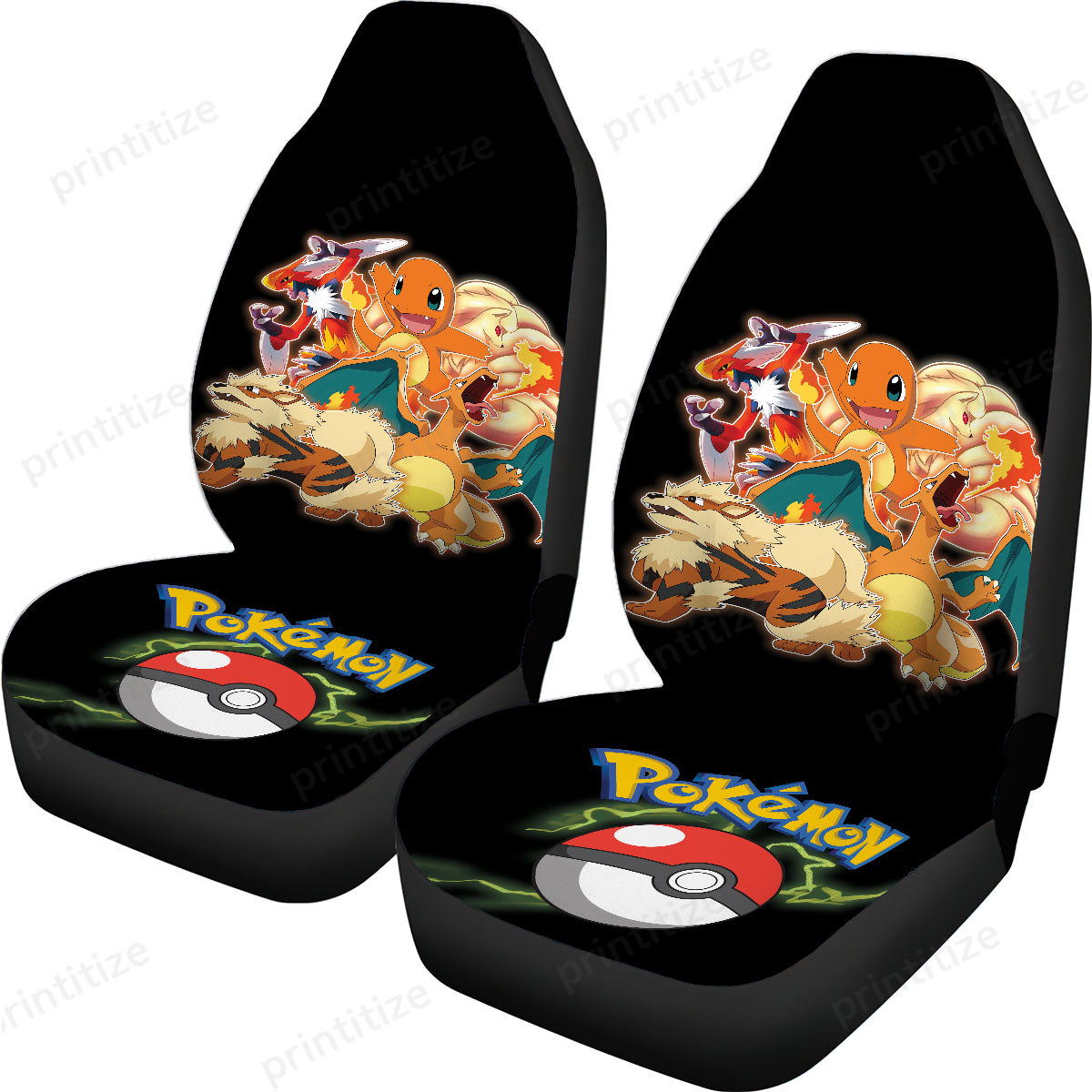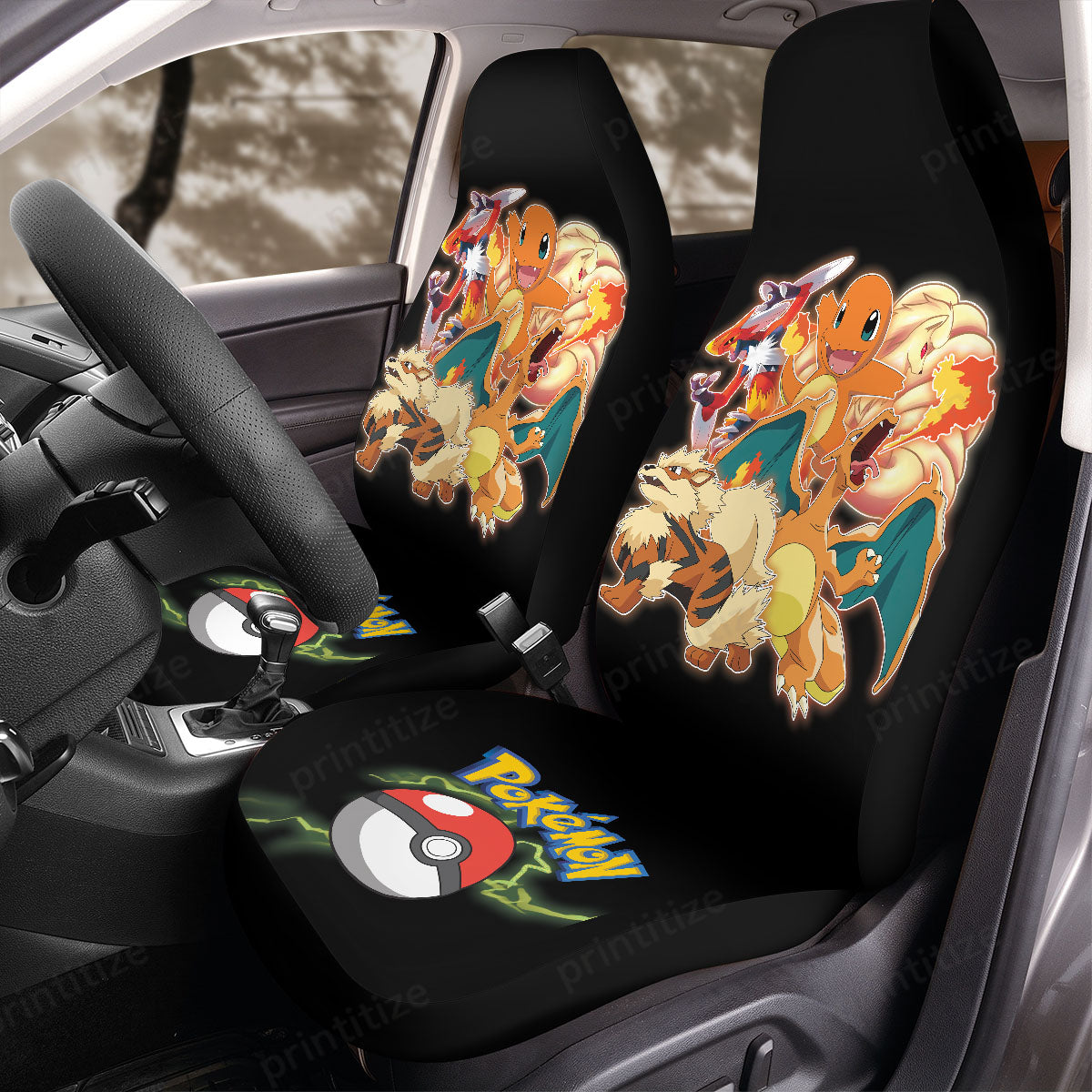 PKM Car Seat Covers Five Cute Fire Type PKM Graphic Seat Covers Black