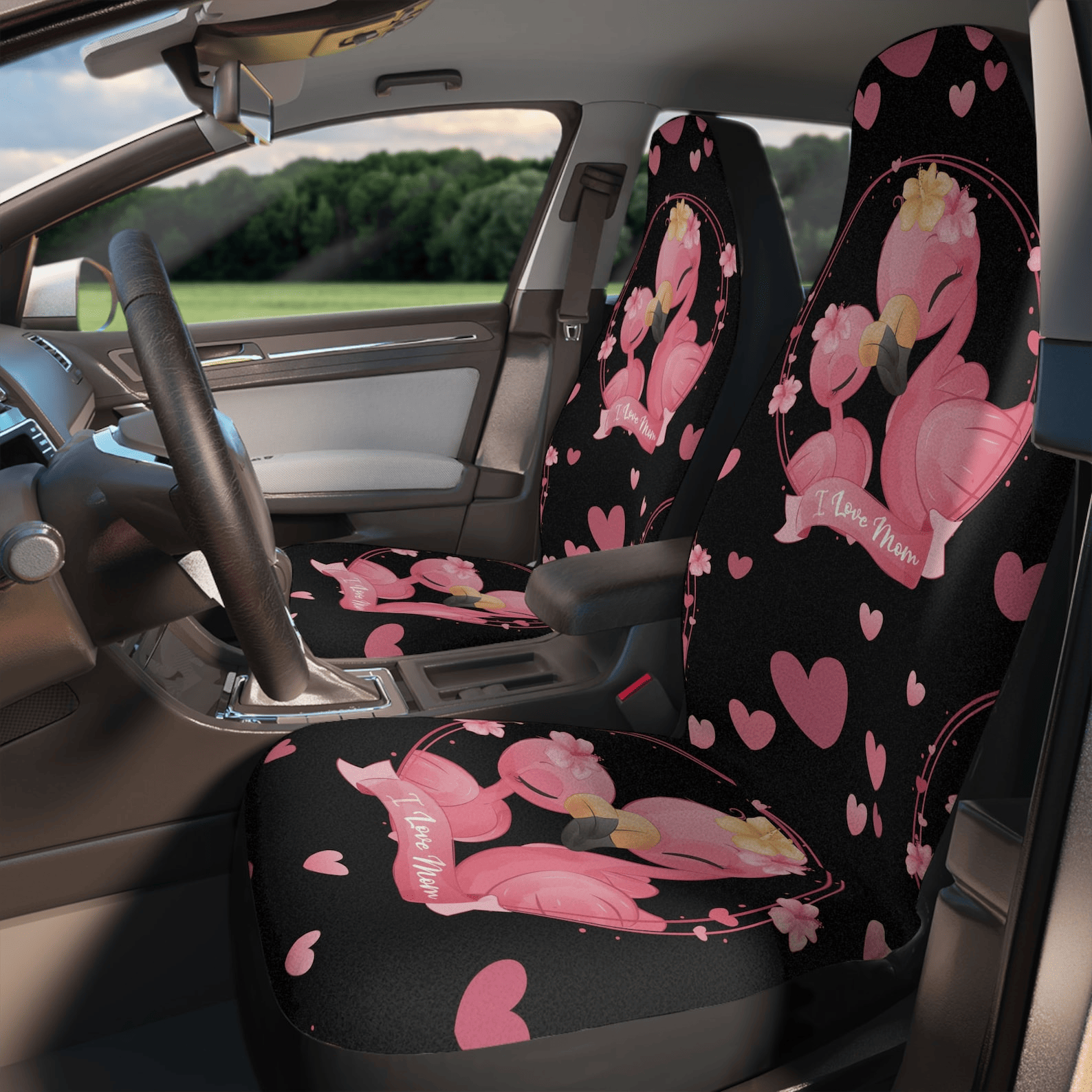Flamingo Car Seat Covers Flamingo I Love Mom Seat Covers Black Pink